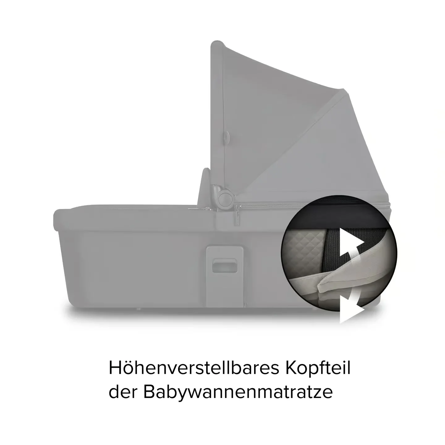 Die Babywanne bietet dank CozyCloud® Matratze, Belüftungsfenstern und verstellbarem Kopfteil eine gesunde Schlafumgebung. Der Sportsitz verfügt über eine vierfach verstellbare Rückenlehne, höhenverstellbare Fußstütze und ein erweiterbares Verdeck mit UPF 50+. Das umfangreiche Zubehör – Wickeltasche, Fußsack, Decke, Spucktücher, Moskitonetz, Regenschutz und mehr – macht das Set zu einem echten Rundum-sorglos-Paket.