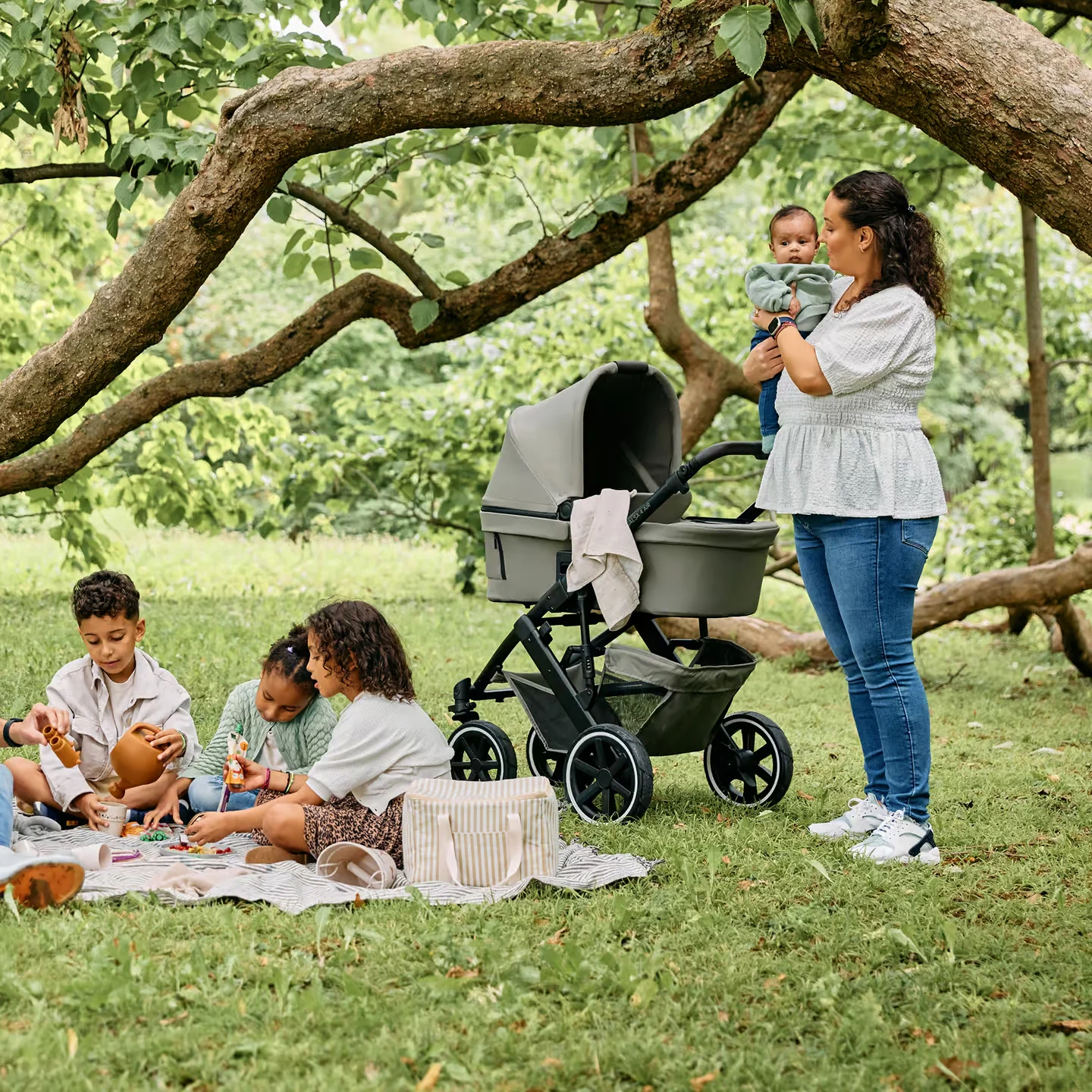 Highlights: Nachhaltige Pure Edition Stoffe, Luftreifen für jede Umgebung, ergonomische CozyCloud® Matratze, umsetzbarer Sportsitz, leichte Babyschale Tulip, umfangreiches Zubehörpaket, großes Belüftungssystem, kompaktes Faltmaß.