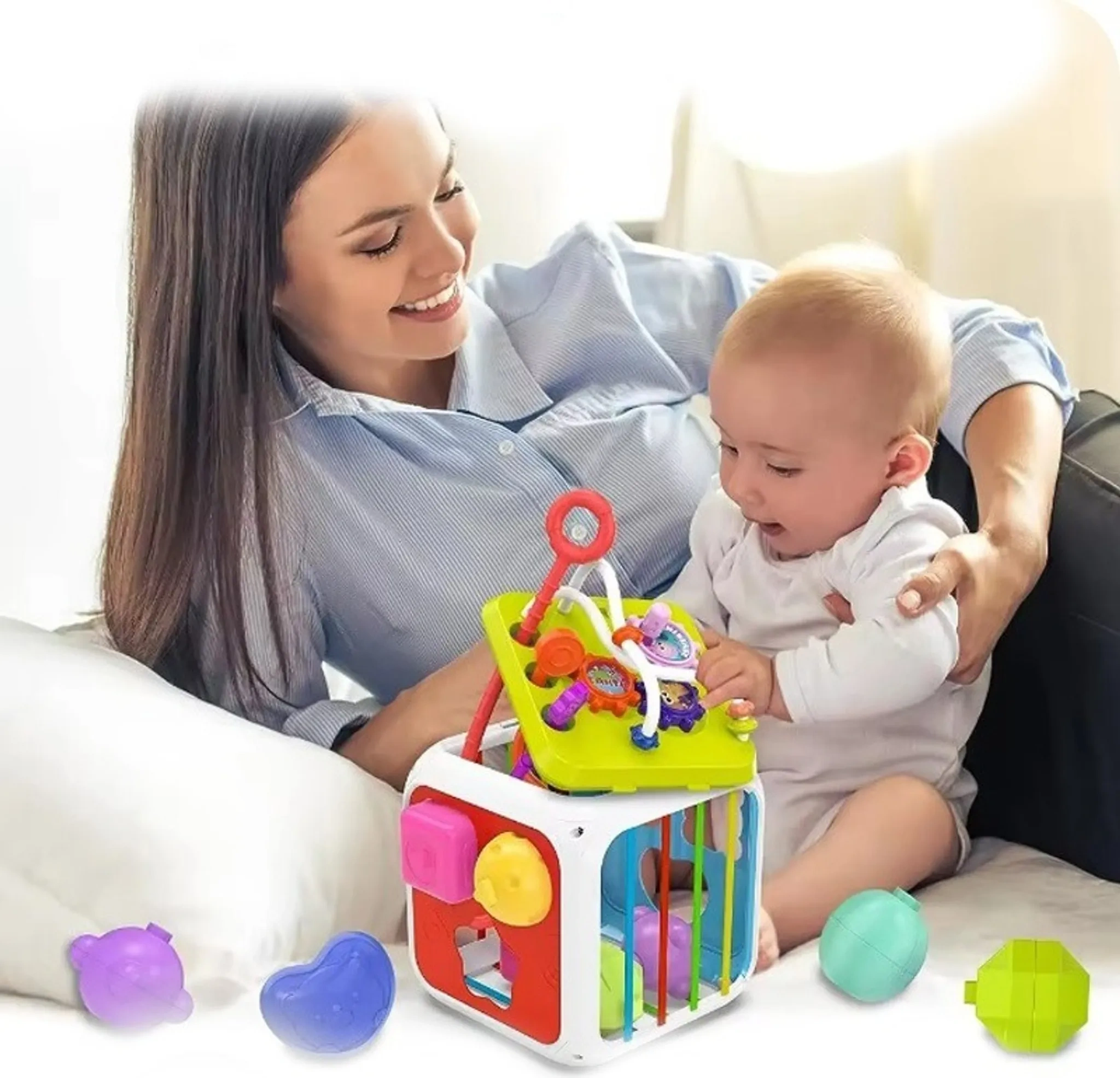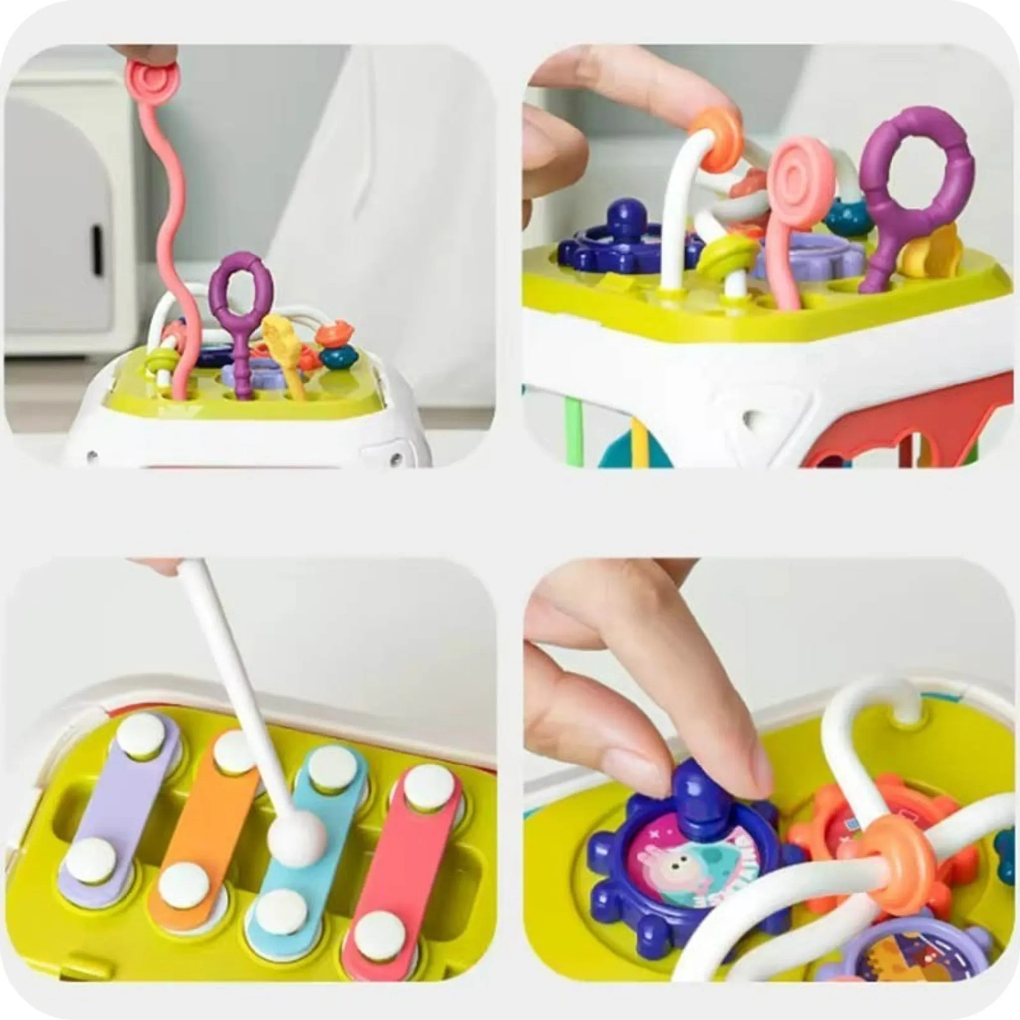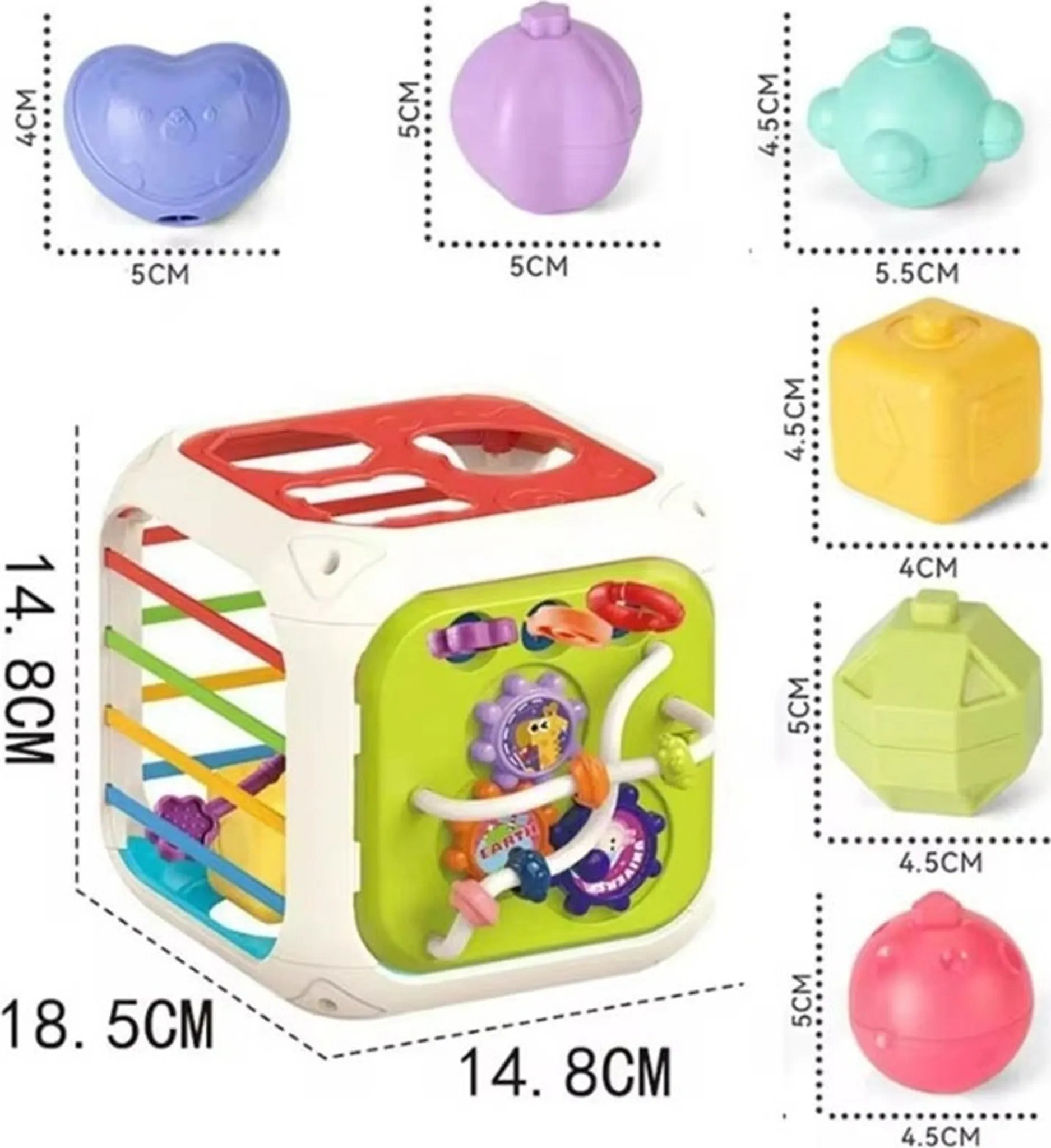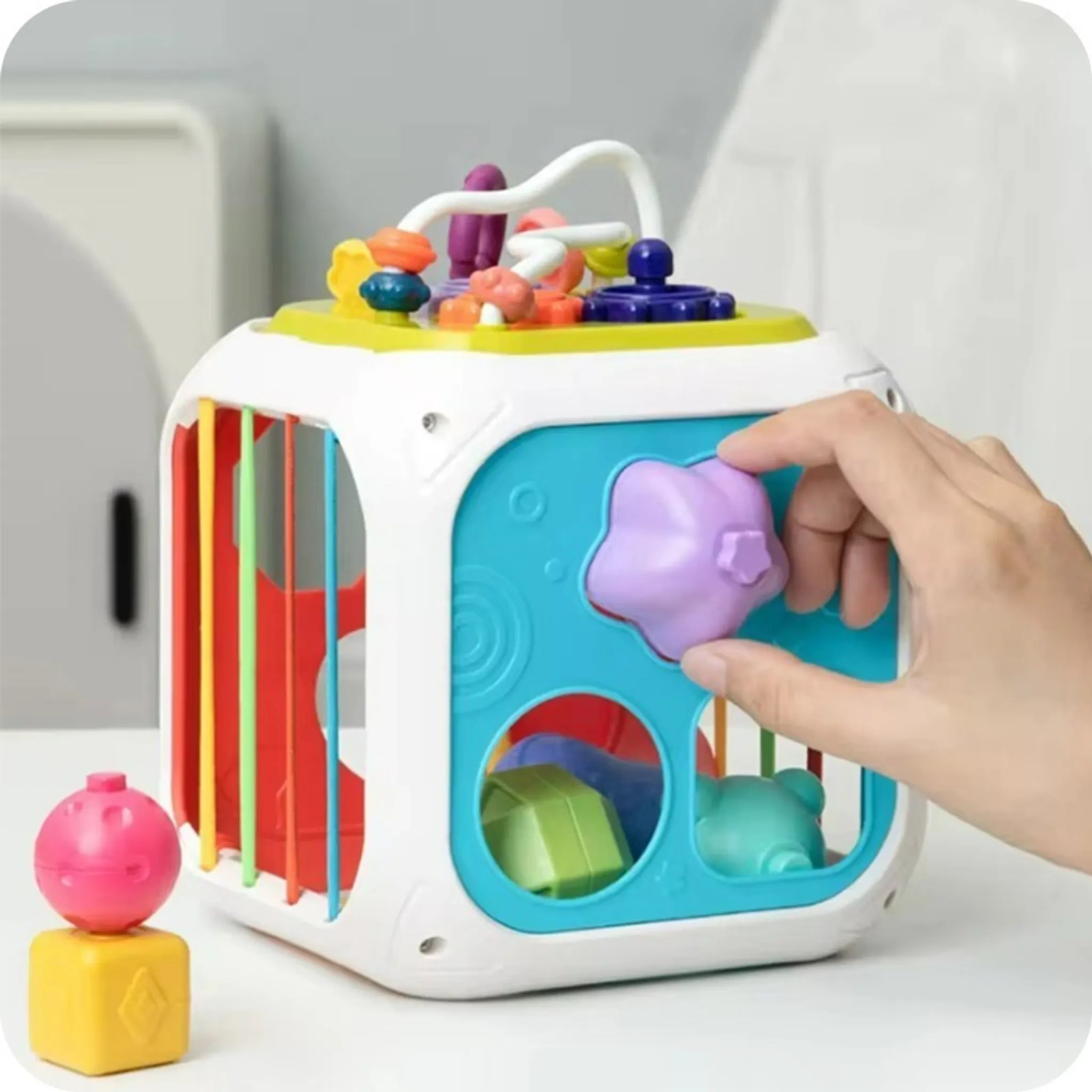 Highlights: 5-in-1 Funktionen mit Sortierwürfeln, drehbaren Zahnrädern, Perlenlabyrinth, Musikelementen und elastischem Gitter; fördert Wahrnehmung, Logik und Motorik; langlebige, kindgerechte Verarbeitung.