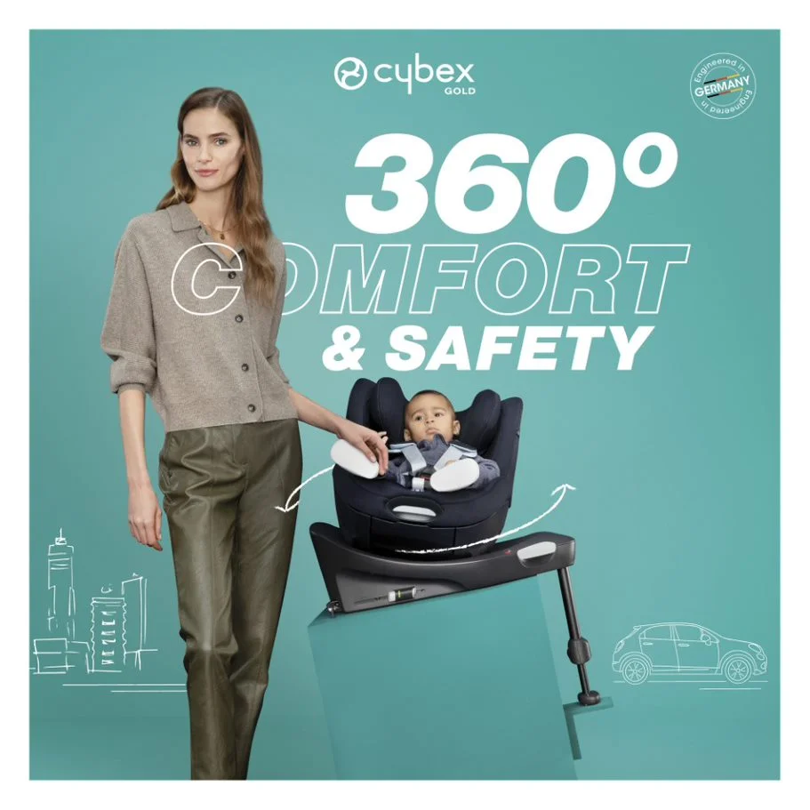 Der Sitz kann rückwärtsgerichtet bis 105 cm genutzt werden und optional ab 76 cm vorwärtsgerichtet. Eine 360° Drehfunktion erleichtert das Ein- und Aussteigen erheblich. Die innovative 360° Luftzirkulation sorgt für ein ausgezeichnetes Klima im Sitz – ideal für längere Fahrten und warme Tage.