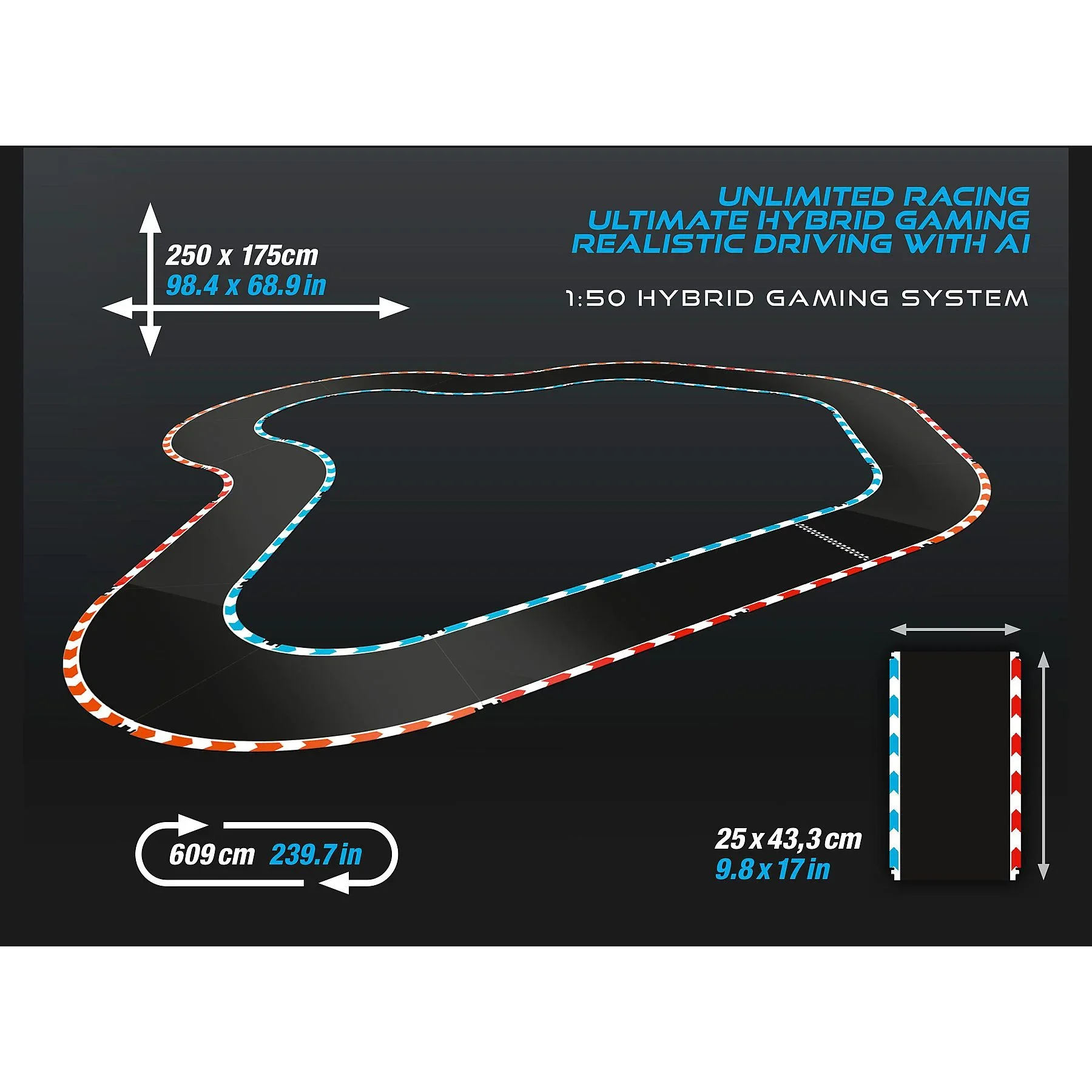App-gesteuertes Rennbahn-Set · Bis zu 30 Fahrer gleichzeitig · Originalgetreue 1:50 Fahrzeuge mit Licht · Indoor-Rennspaß ab 12 Jahren