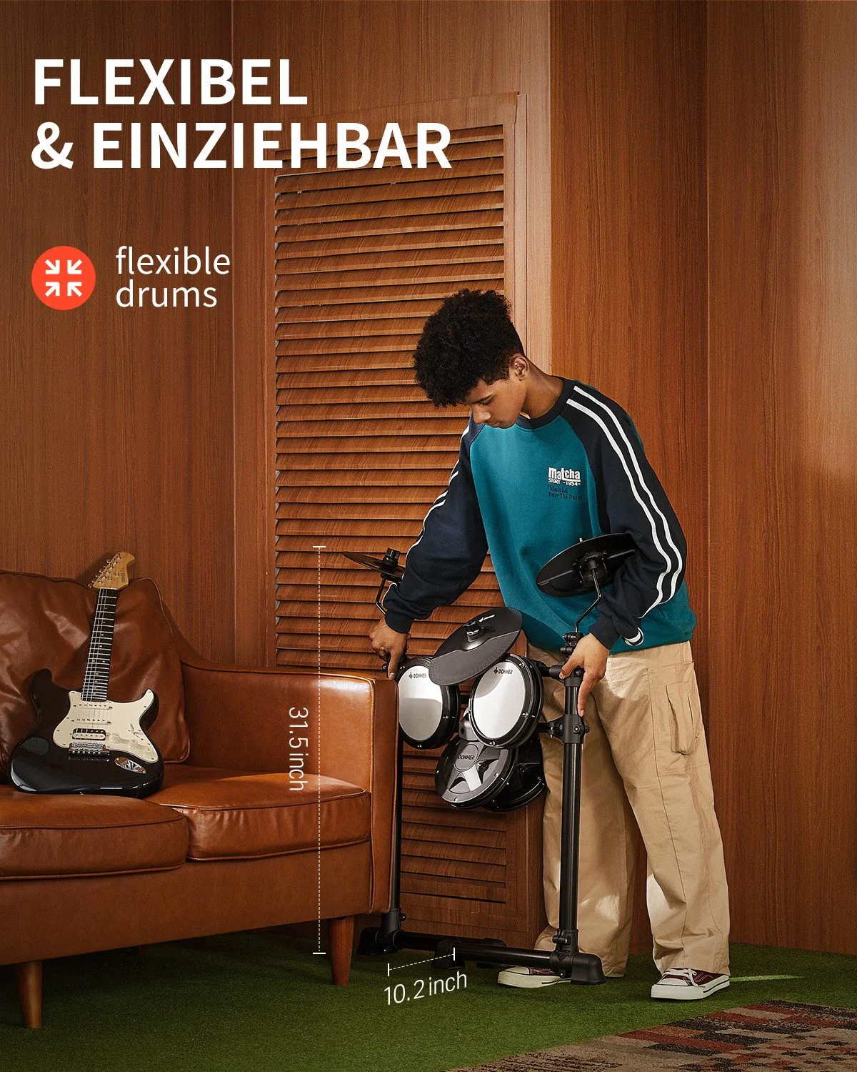 die ein kompaktes, realistisches und leises Drumset suchen – komplett ausgestattet,