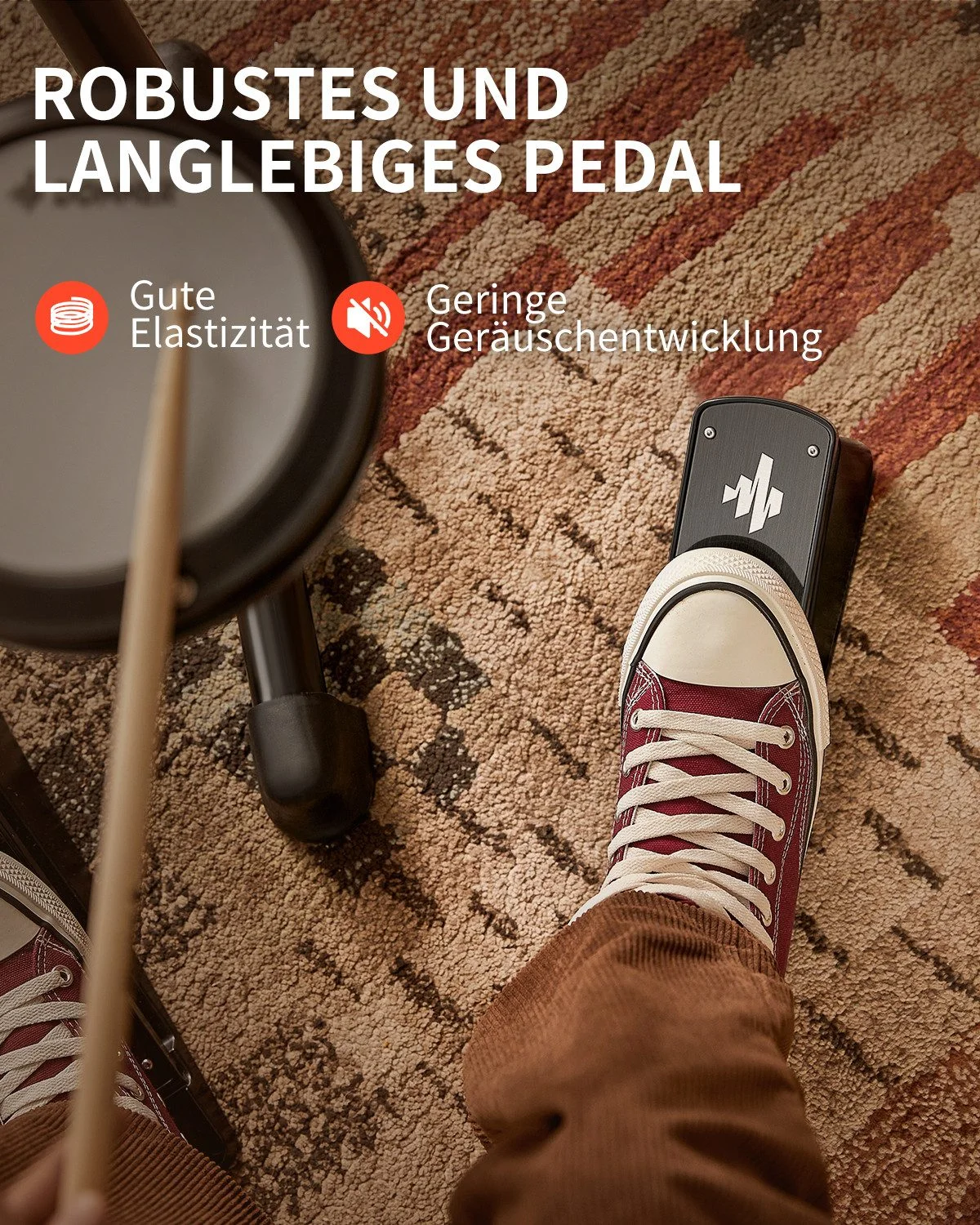 - Langlebiges Hi-Hat & Kick-Pedal mit verbessertem Geräuschverhalten