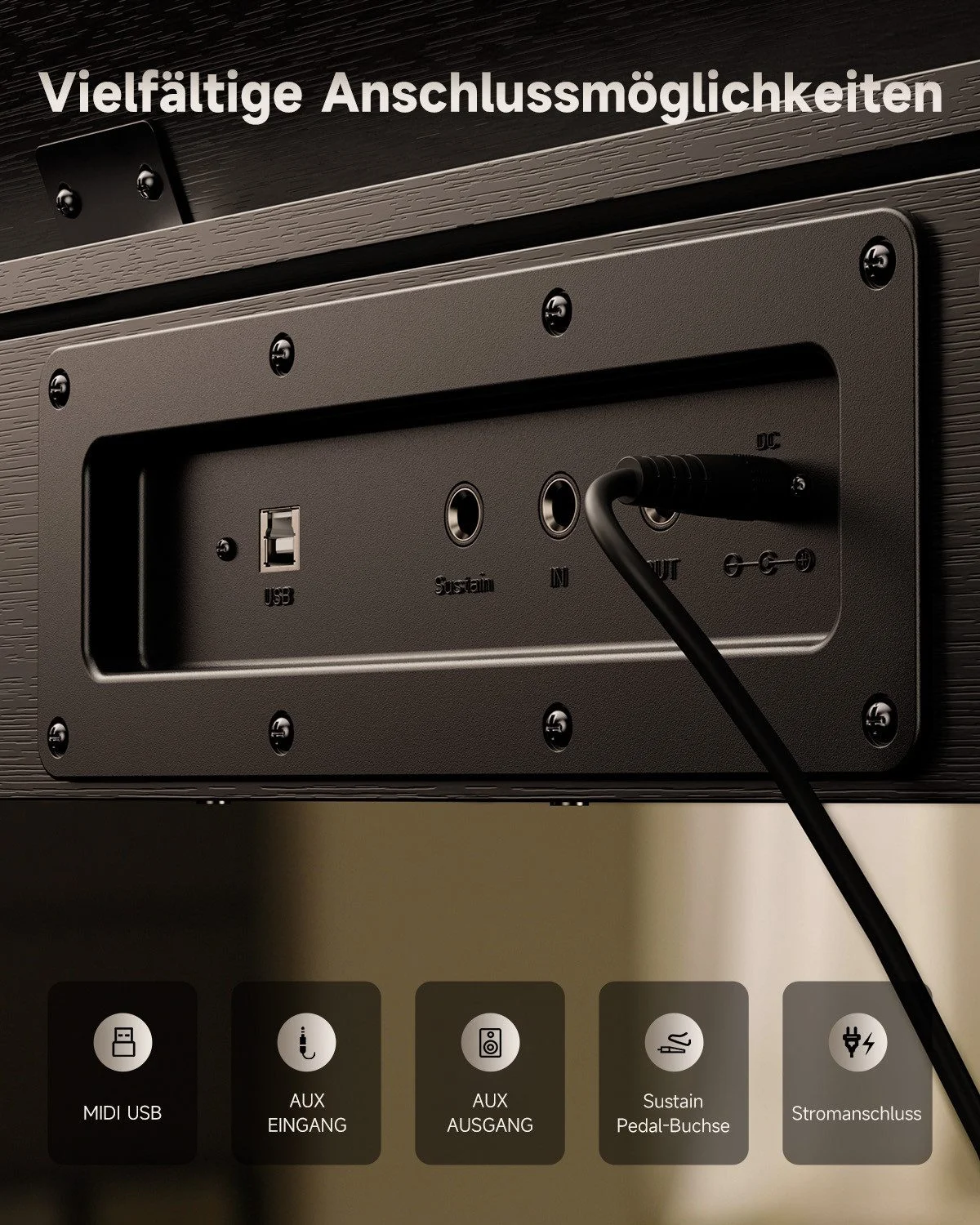 - Leises Üben über Kopfhörer jederzeit möglich
