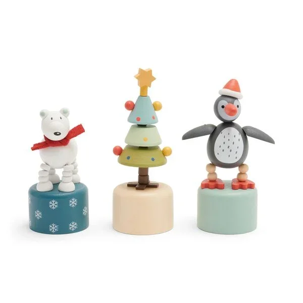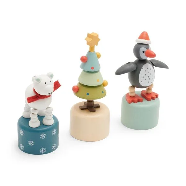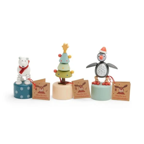 Mit einem sanften Druck erwachen Pinguin, Eisbär oder Tannenbaum zum Leben: Die klassischen Drückfiguren aus Holz bewegen sich spielerisch und sorgen für kleine Überraschungsmomente. Das robuste Holzspielzeug fördert die Feinmotorik und lädt Kinder dazu ein, Bewegungsabläufe zu entdecken und zu experimentieren.