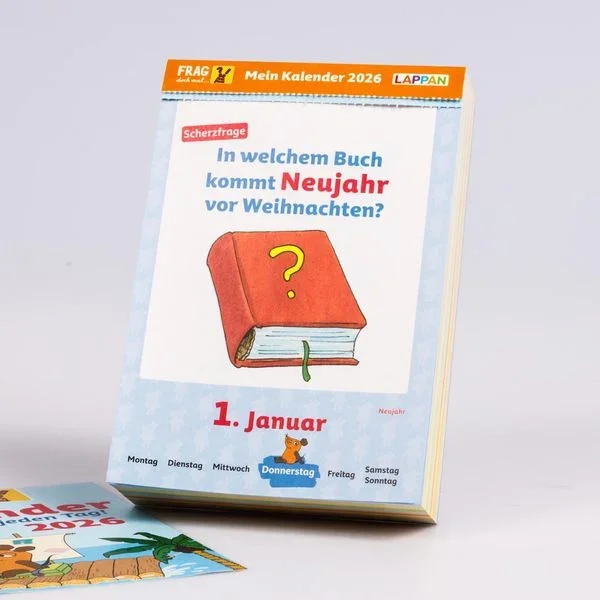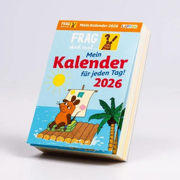 Mit dem Bestseller-Tageskalender „Frag doch mal ... die Maus“ geht es 2026 wieder Tag für Tag voller Neugier durchs Jahr. Warum heißt die Steinzeit eigentlich Steinzeit? Haben Menschen auch an den Zehen Fingerabdrücke? Und was verbirgt sich hinter einem Nimbostratus? Der Kalender beantwortet Fragen, die Kinder der Maus stellen – wissenswert, altersgerecht und unterhaltsam.