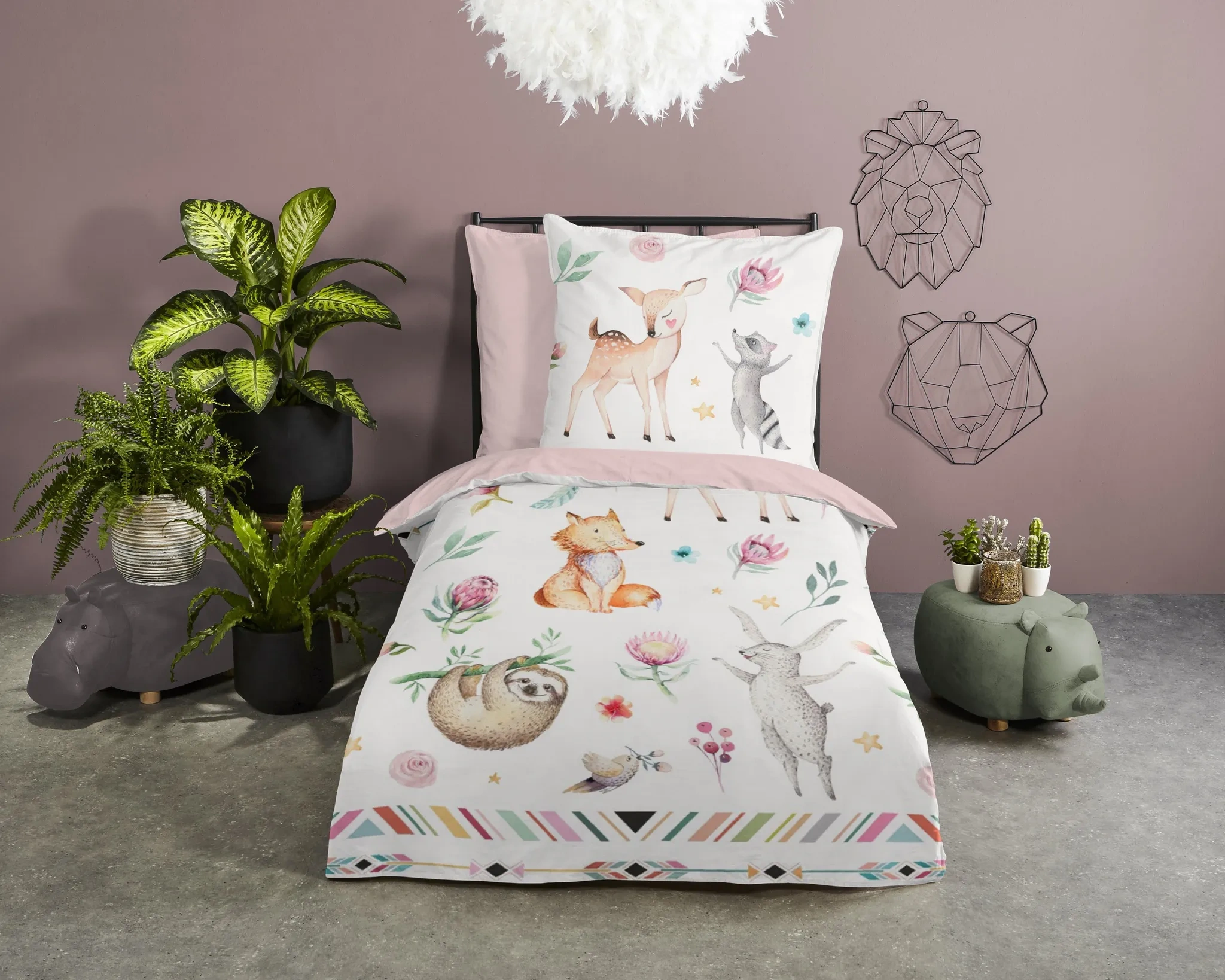 Good Morning Kinderbettwäsche „Dance“ – Tiermotive 135x200 cm + 80x80 cm, 100% Baumwolle Renforcé