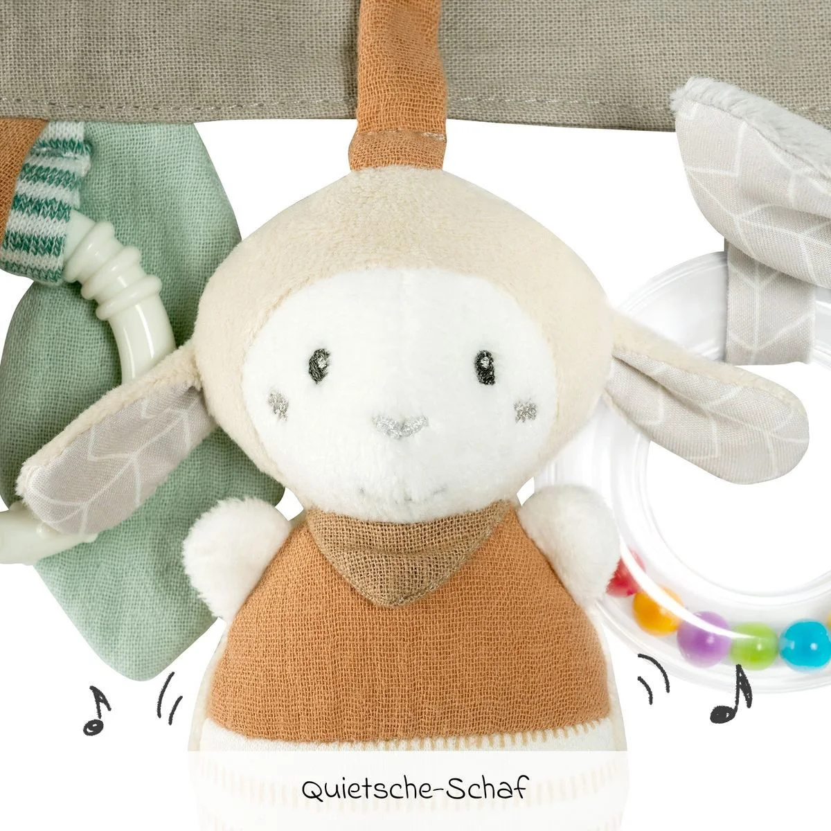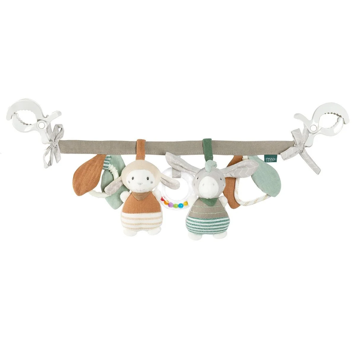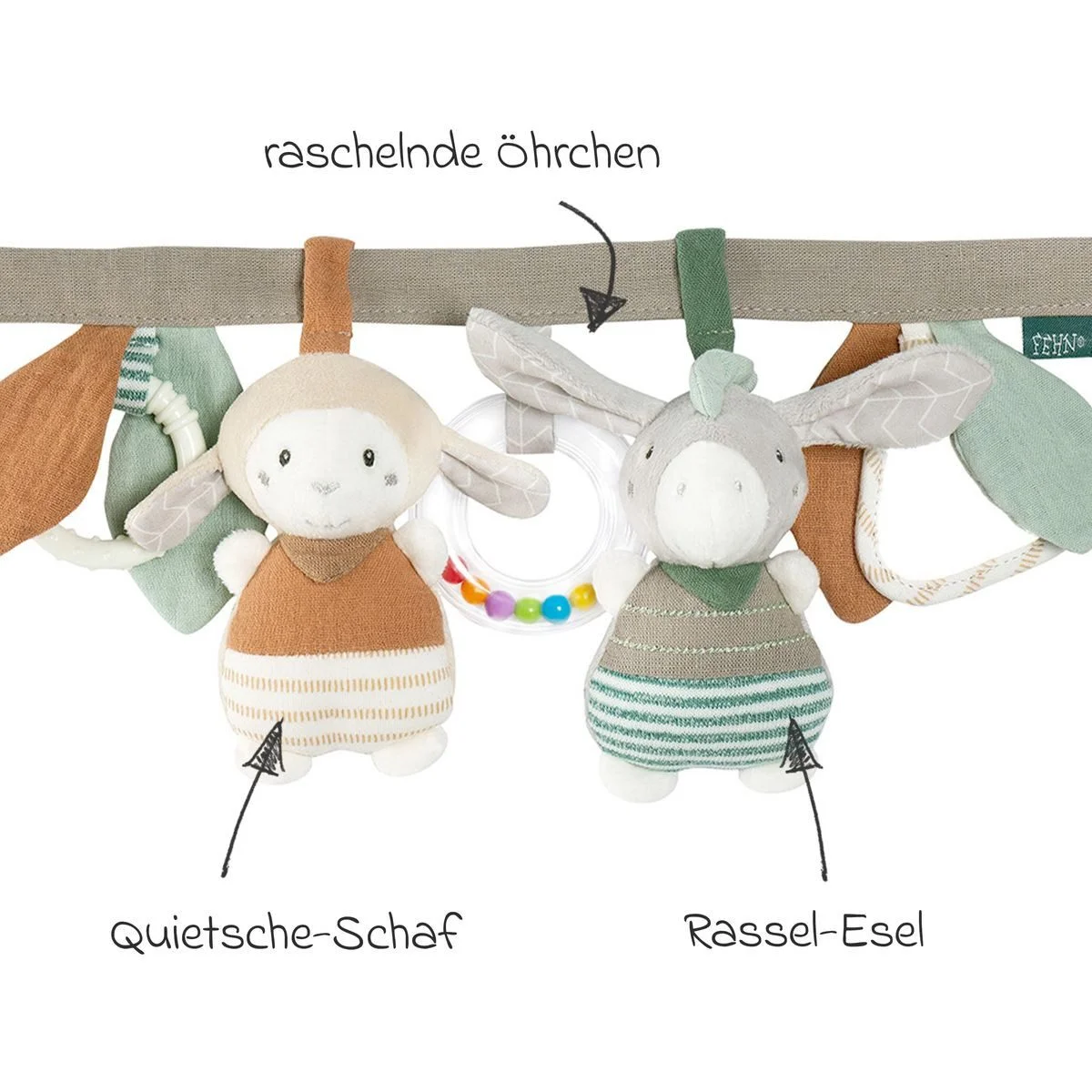Kinderwagenkette „Esel & Schaf“ – Mit Rassel, Quietsche & Knisterelementen