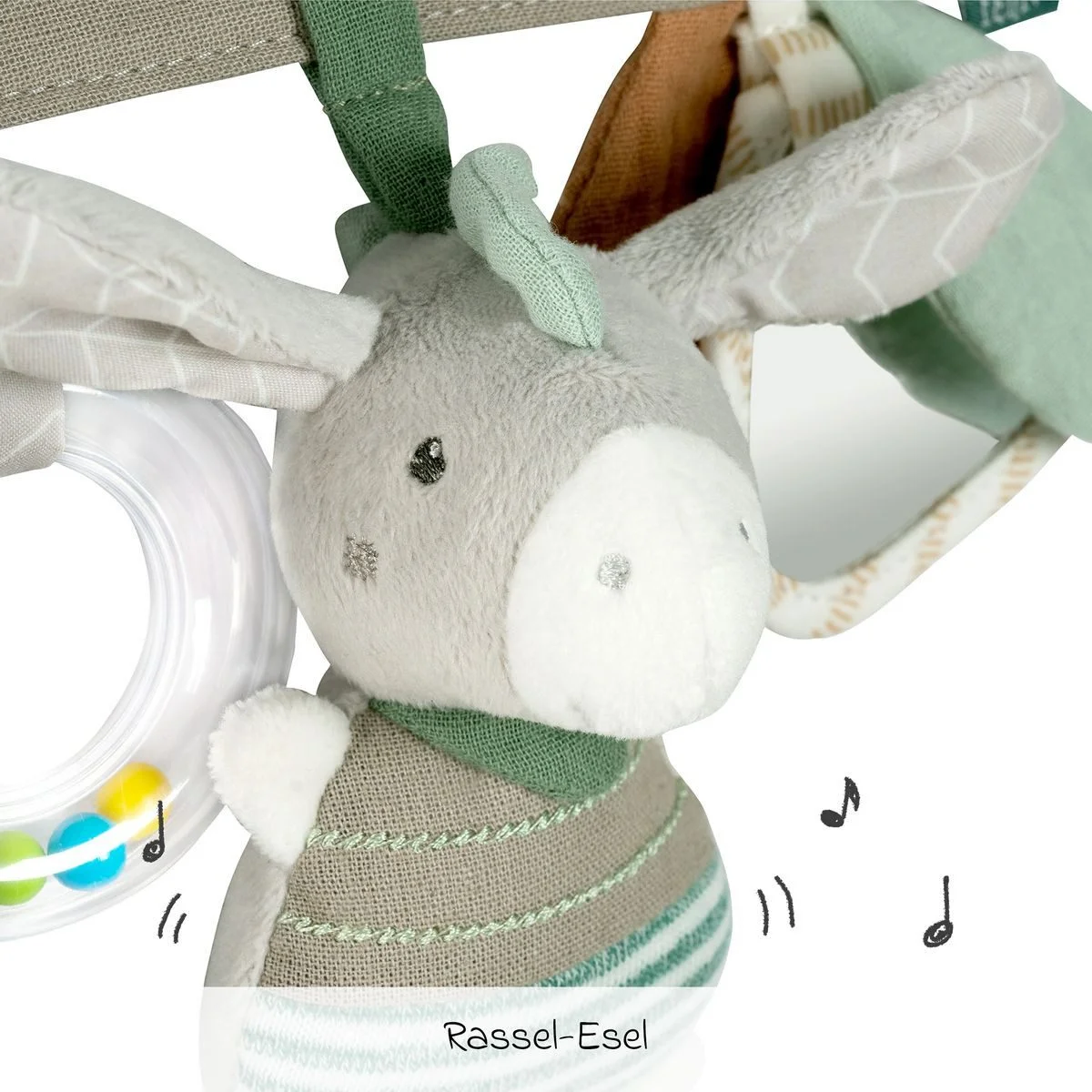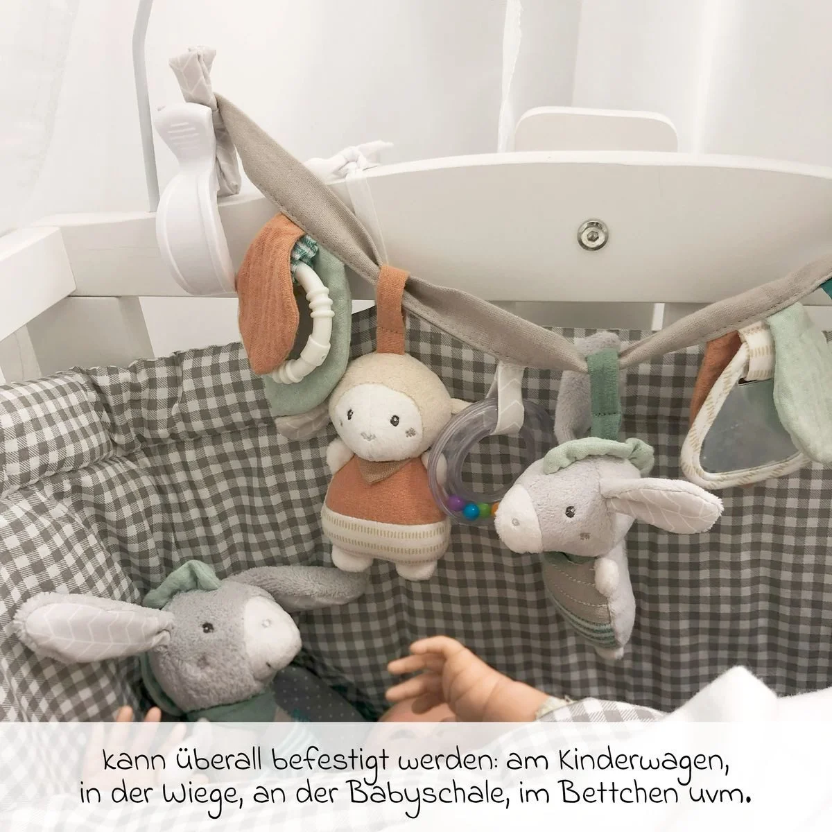 Highlights: Fördert Greifen, Hören, Tasten & visuelle Wahrnehmung; vielseitig befestigbar; weiche Materialien; getestete Sicherheit; ideale Geschenkidee für Neugeborene.