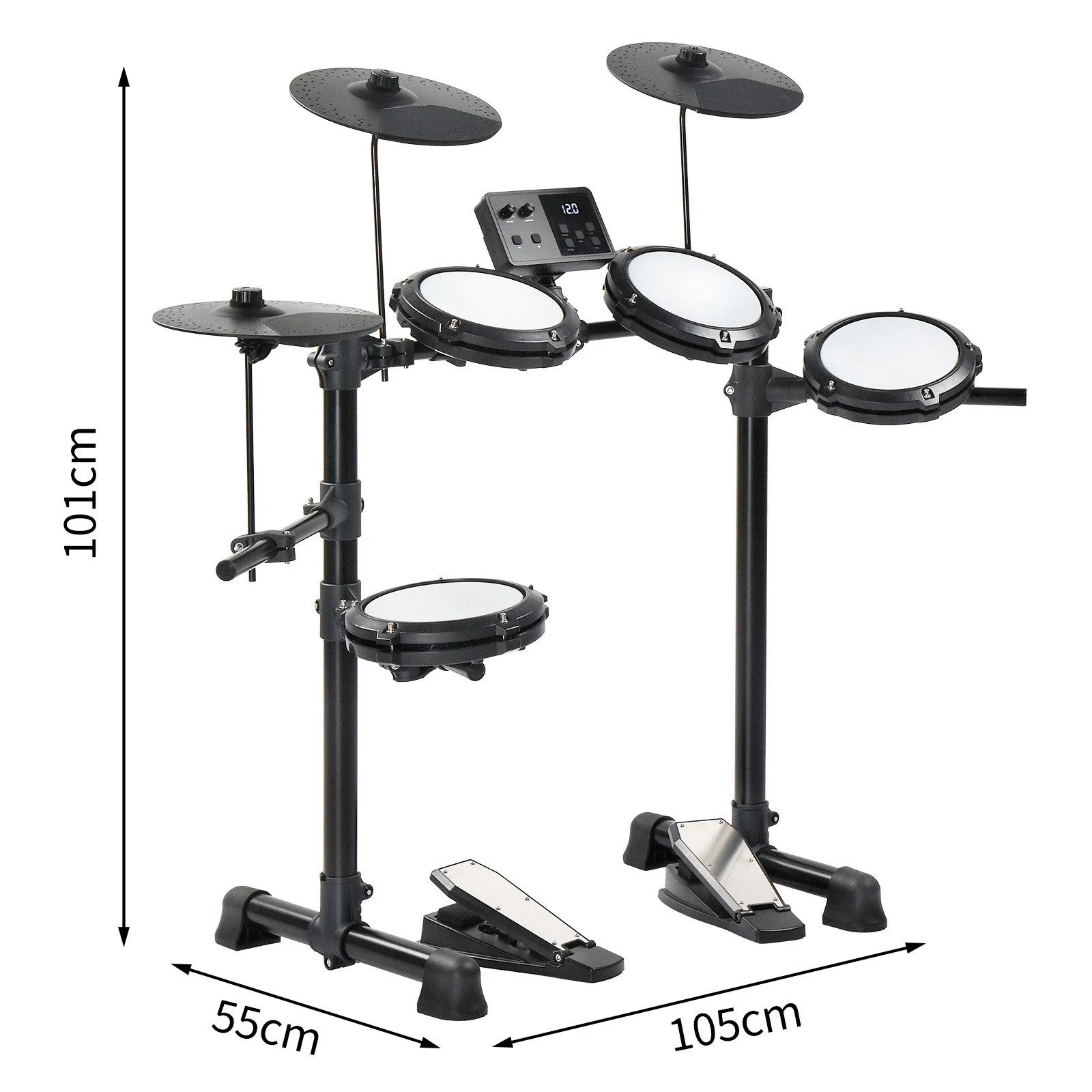 - 4 × 7" Mesh-Pads & 3 × 10" Becken mit stabilem Metallrahmen