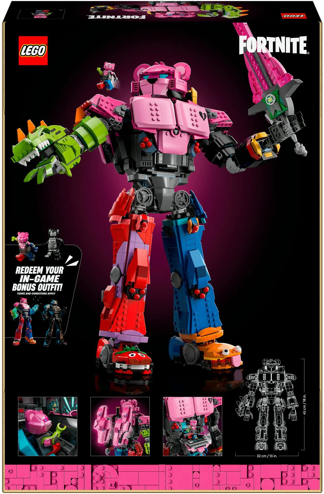 | Inklusive | Mecha-Anführer Minifigur, Cockpit, Spielzeugschwert, digitale Bonus-Outfits für LEGO Fortnite / Fortnite |