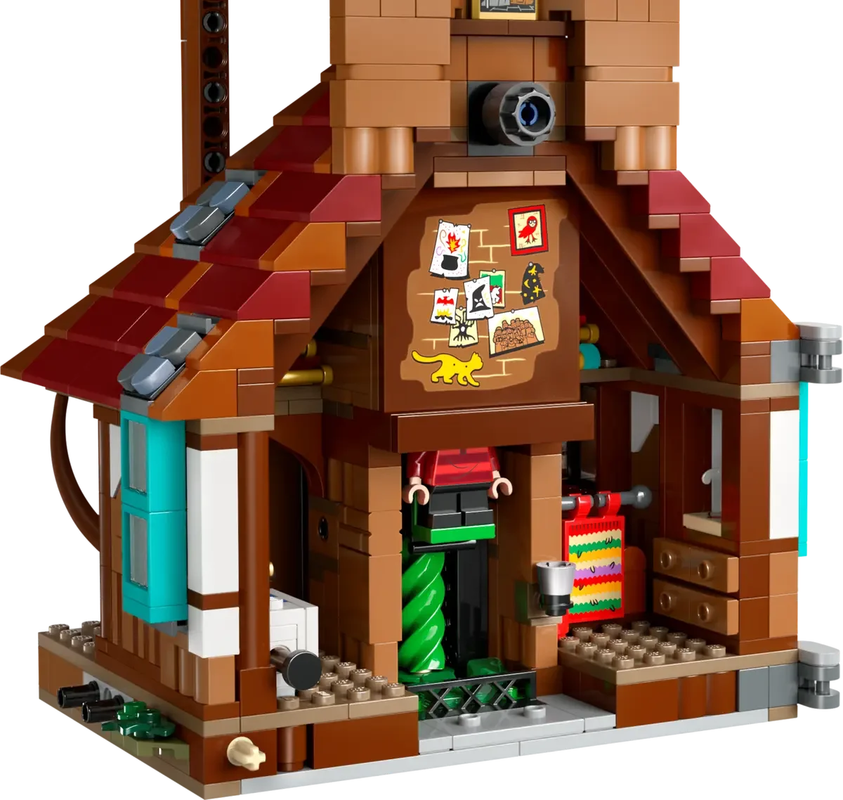 Beim Aufklappen wird das detailreiche Innenleben sichtbar: selbstreinigende Kochtöpfe, ein Kamin mit Flohnetzwerk-Funktion und das kreative Chaos in Freds und Georges Zimmer. Zusätzlich gibt es einen angebauten Schweinestall sowie zahlreiche kleine Überraschungen, die Fans sofort erkennen werden. 10 Minifiguren – darunter die gesamte Weasley-Familie – beleben das Modell auf charmante Weise.