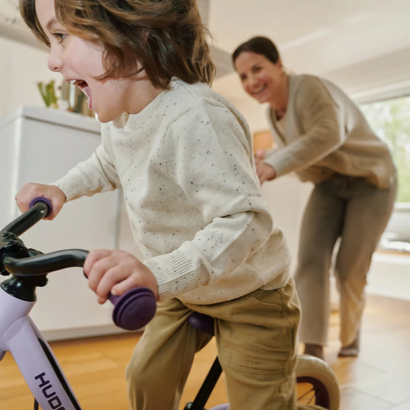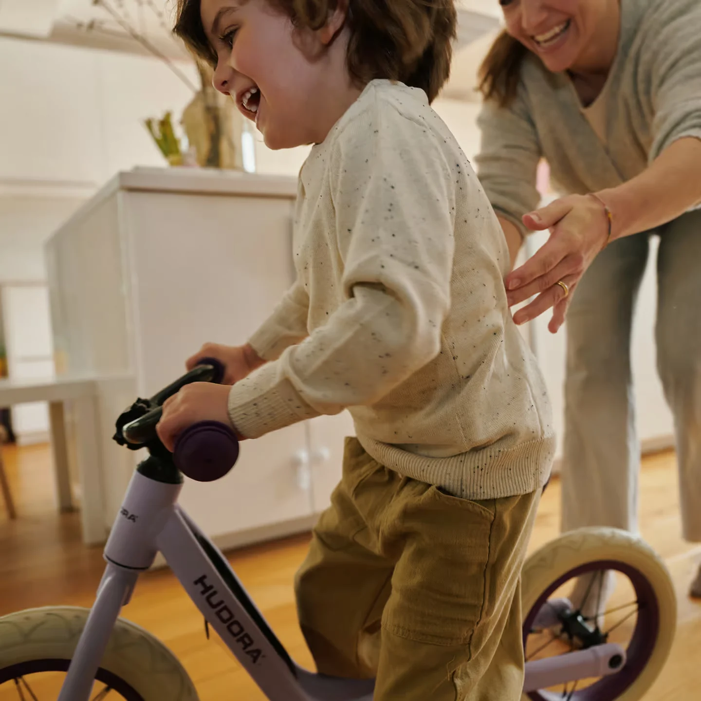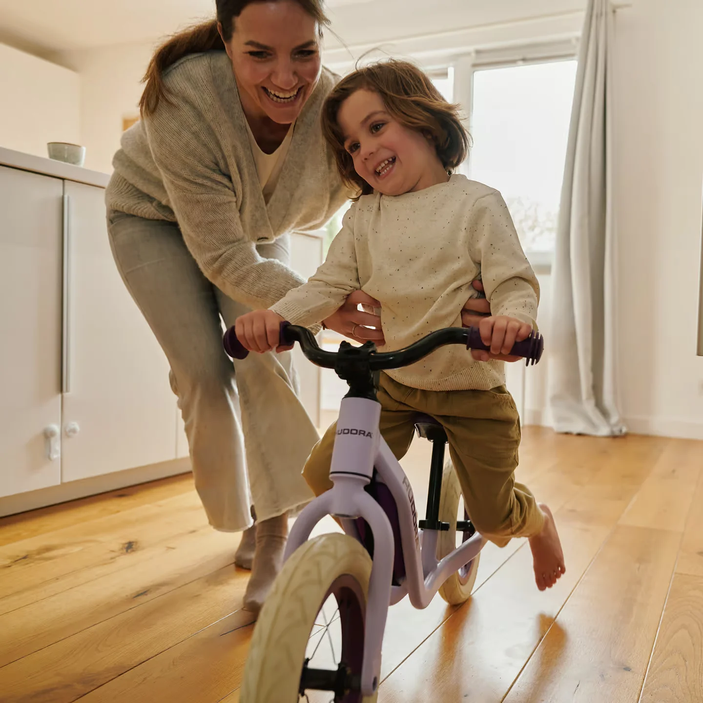 Das Laufrad Explory von HUDORA kombiniert ein geringes Gewicht mit hoher Stabilität und bietet kleinen Entdeckern ab ca. 2,5 Jahren einen komfortablen Einstieg auf zwei Rädern. Der tiefe Rahmen erleichtert das eigenständige Auf- und Absteigen, während die weichen 12,5-Zoll-Gummireifen für ein ruhiges und angenehmes Fahrgefühl sorgen.