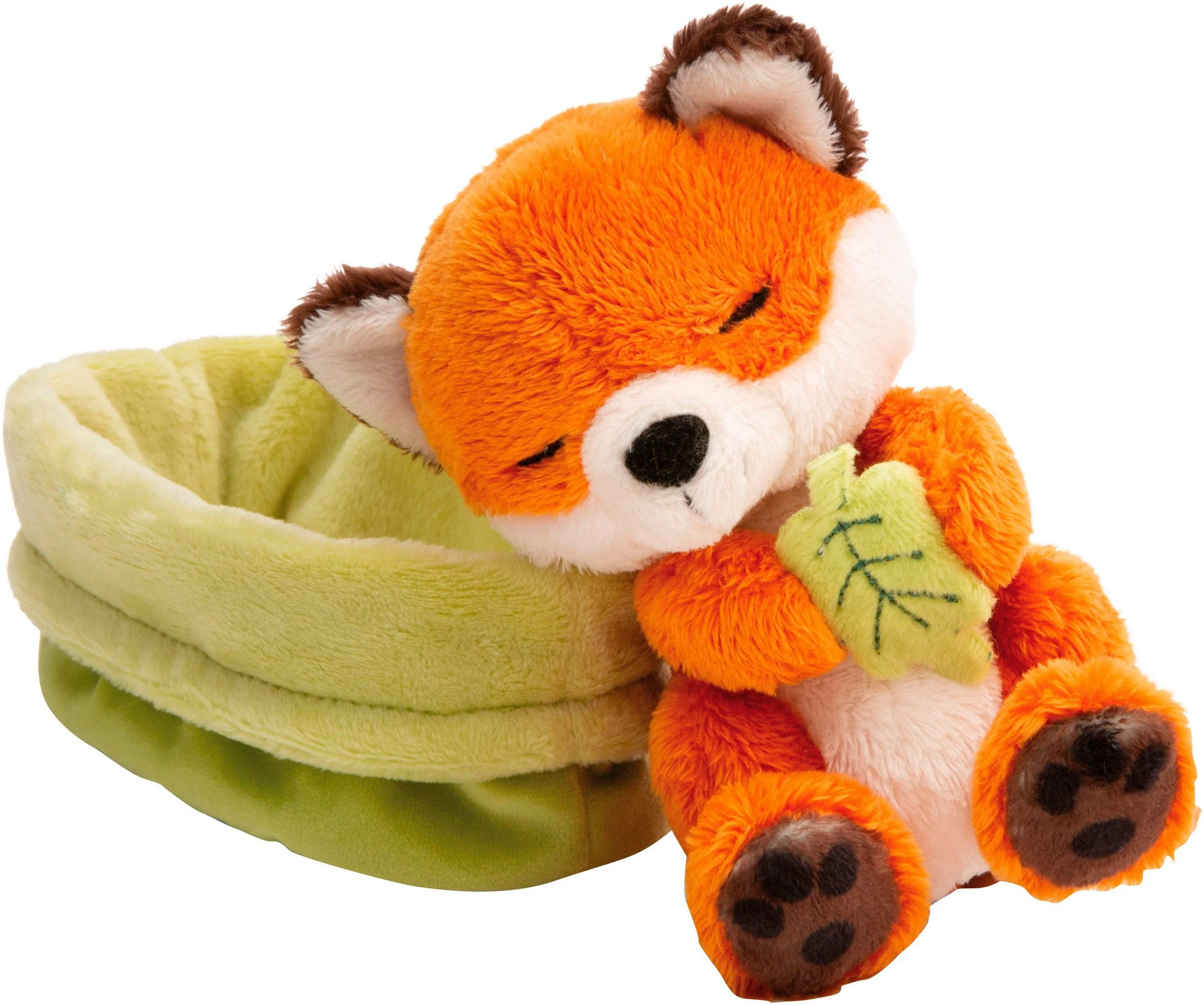 Produktinformationen "NICI Sleeping Pets GREEN – Fuchs mit Blatt, 12 cm, im grünen Plüschkörbchen"