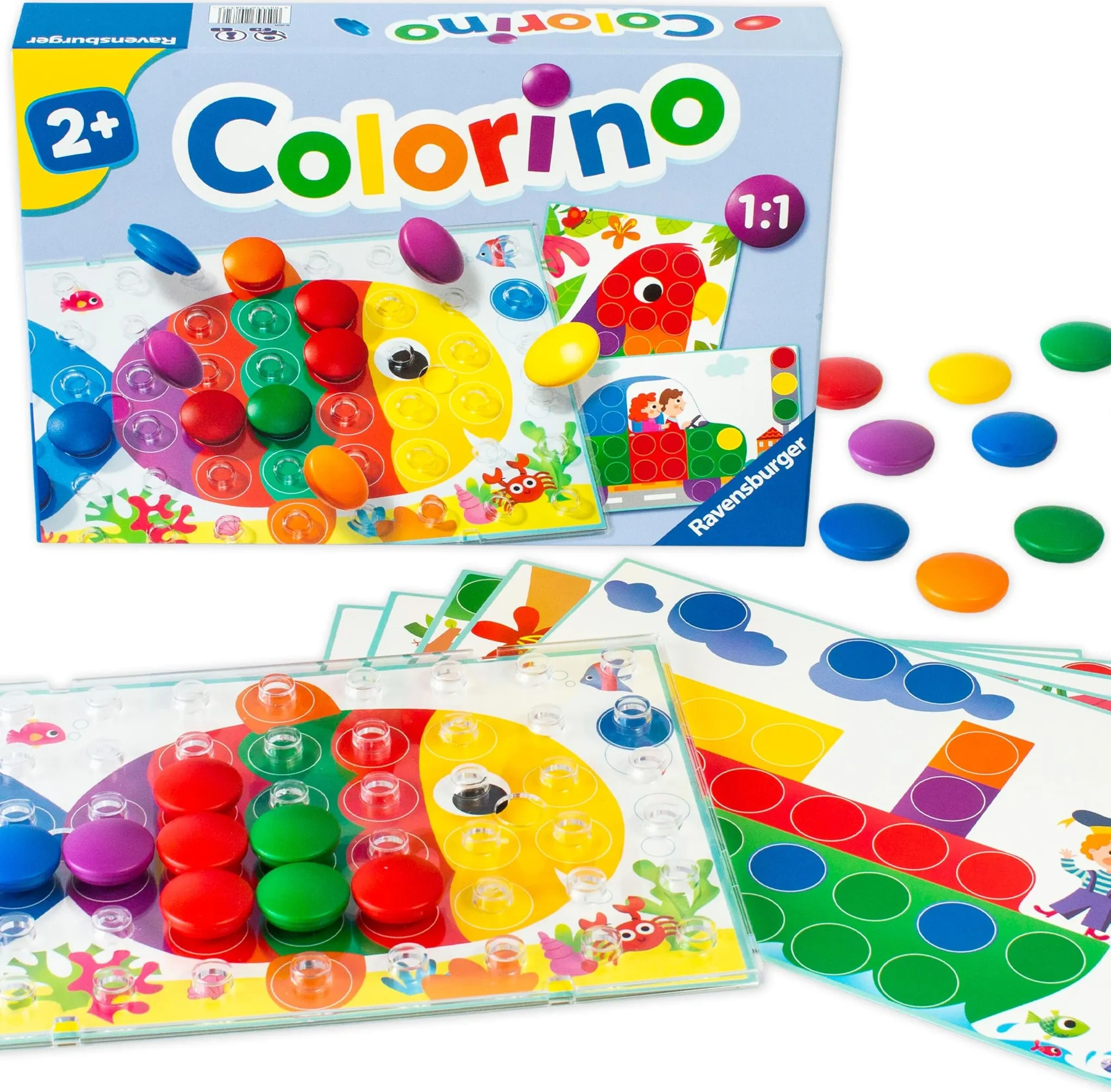 Colorino von Ravensburger ist der beliebte Klassiker unter den Steckspielen – ideal für Kinder ab 2 Jahren. Mit bunten Stecksteinen, farbenfrohen Motivtafeln und einer transparenten Stecktafel entdecken Kinder spielerisch die Welt der Farben und trainieren gleichzeitig ihre Feinmotorik und Konzentration.