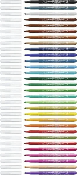 Die STABILO power Filzstifte liefern kräftige, leuchtende Farben für Schule, Hobby und kreative Stunden zu Hause. Dank ihrem außergewöhnlichen Austrocknungsschutz können die Stifte bis zu 8 Wochen ohne Kappe liegen, ohne auszutrocknen – ideal für Kinder, kreative Köpfe und alle, die langlebige Farbqualität schätzen.