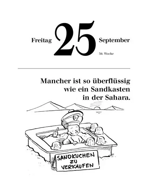 | Nutzung | Täglich ein Blatt abreißen; geeignet zum Aufstellen oder Aufhängen. |