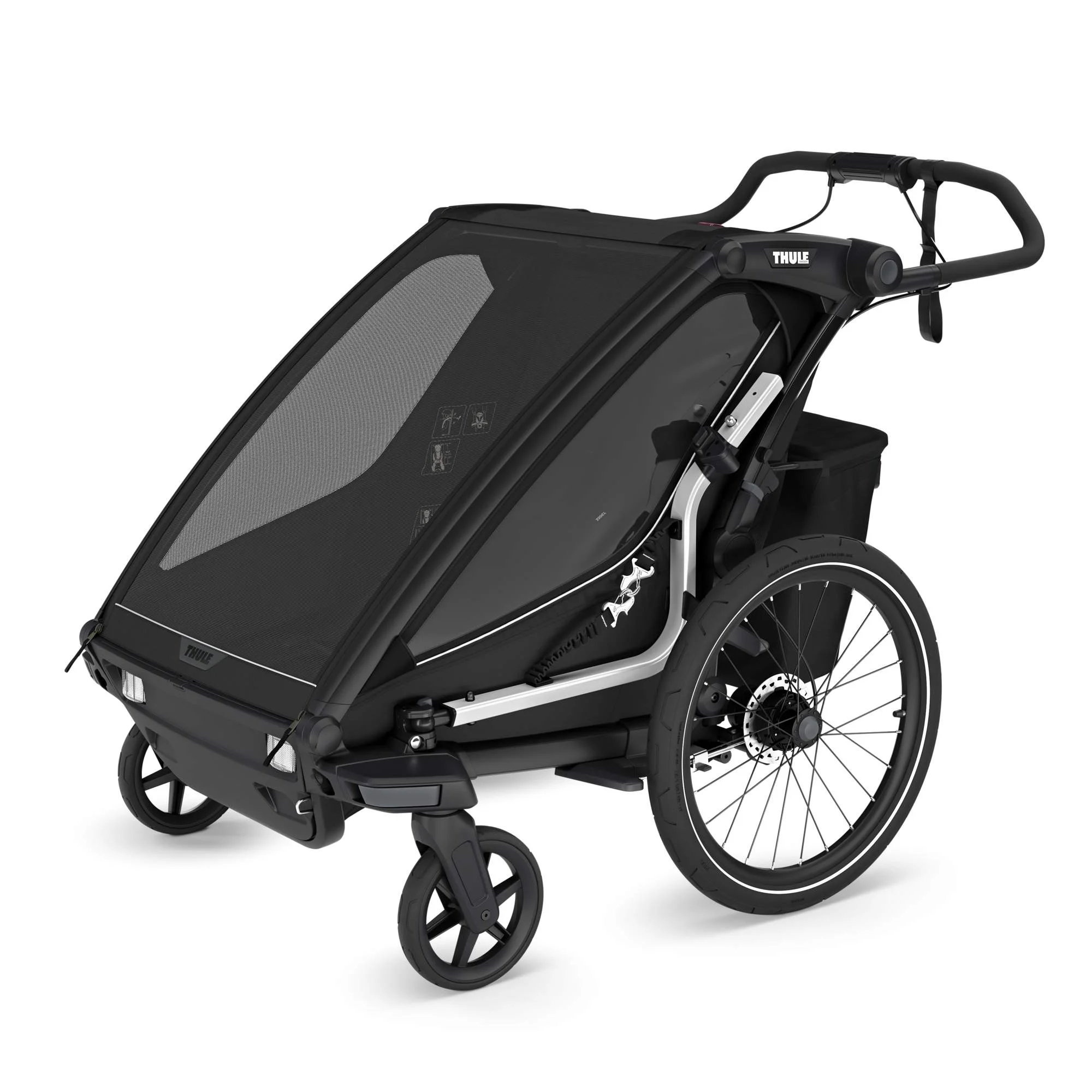 Thule Chariot Sport 2 Double, Schwenkbare Buggy-Vorderräder, Click-In Deichsel, LED-Rücklicht |