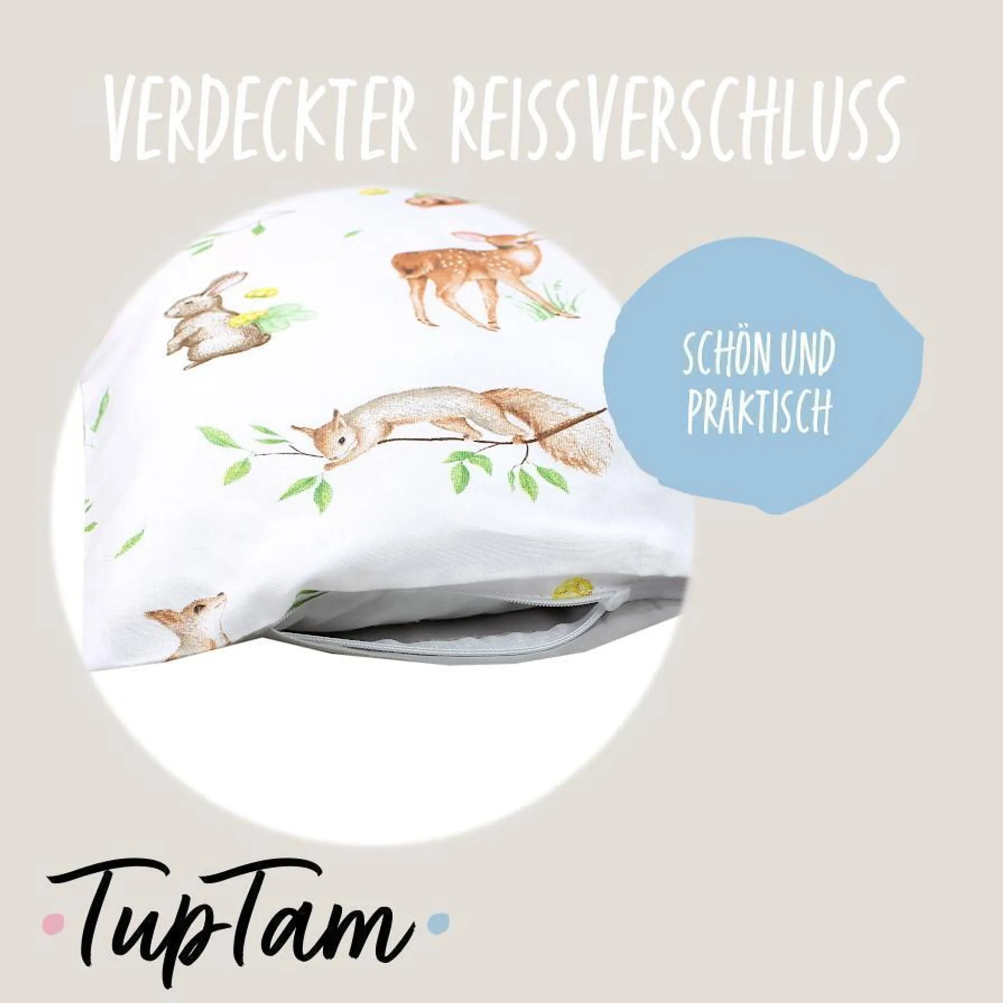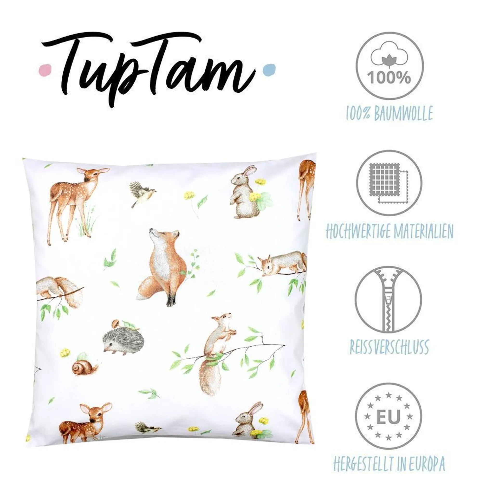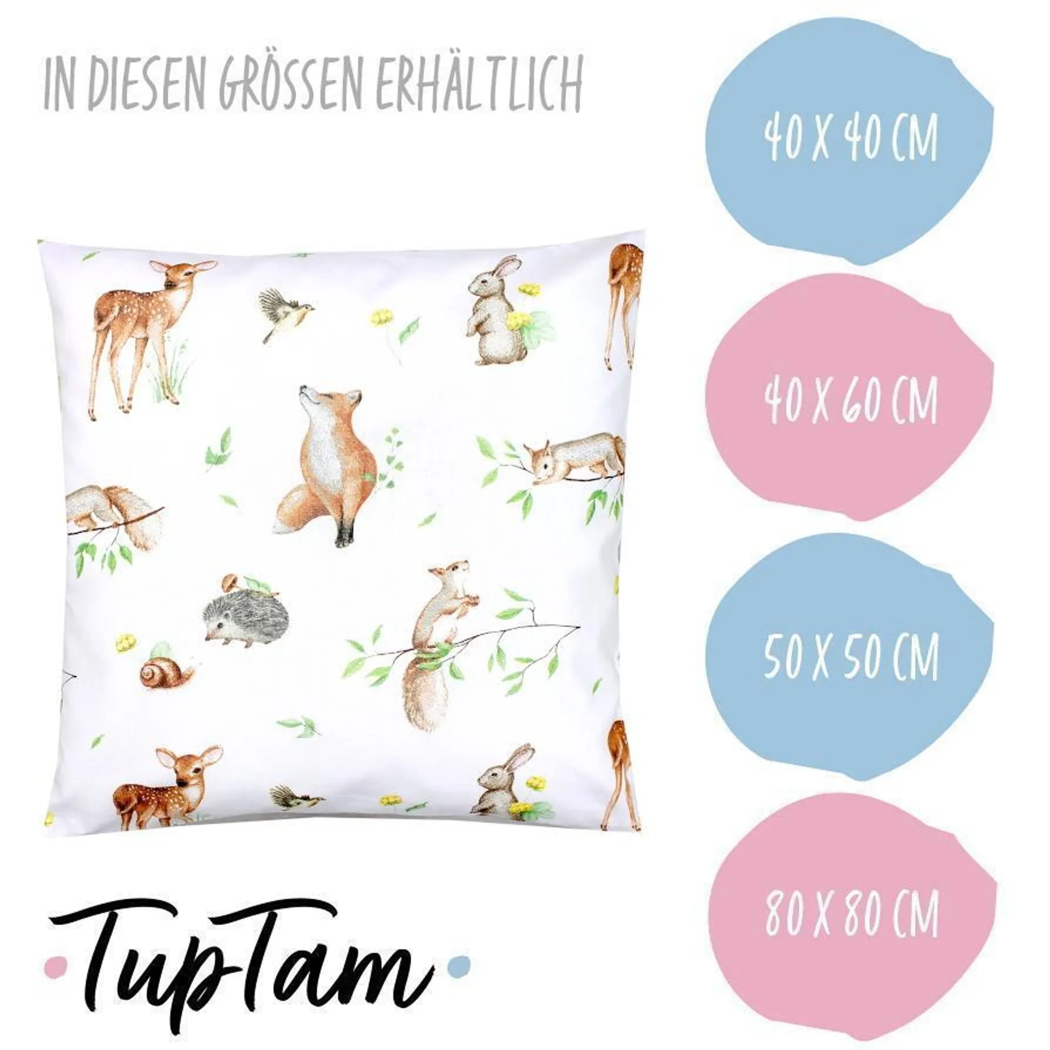 TupTam Kinder Kissenbezug 40×60 cm – Motiv „Waldtiere & Igel“ in Beige