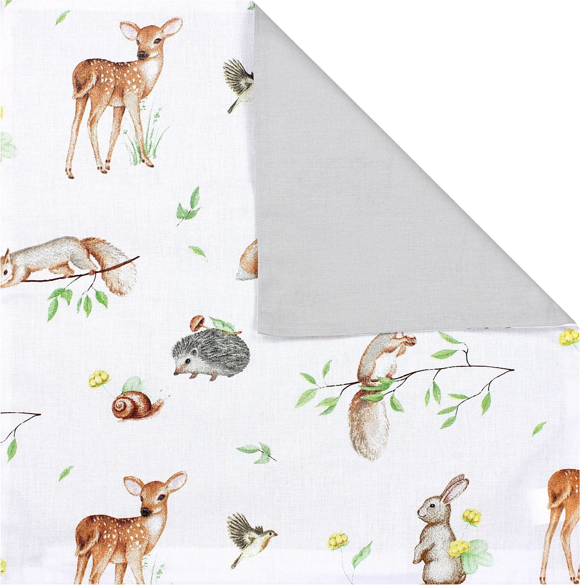 | Farbe | Beige mit Tiermotiven (Reh, Fuchs, Igel, Hase) |