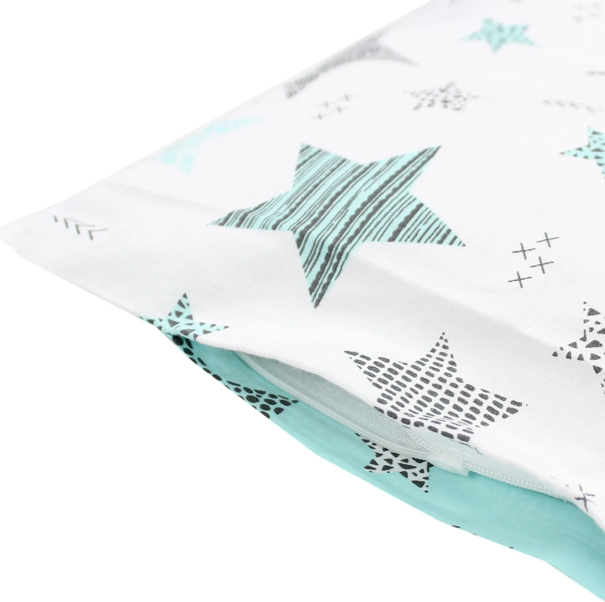 | Im Paket | 1 × Kinder-Kissenbezug 80×80 cm, Motiv „Sterne Mint/Schwarz“ |