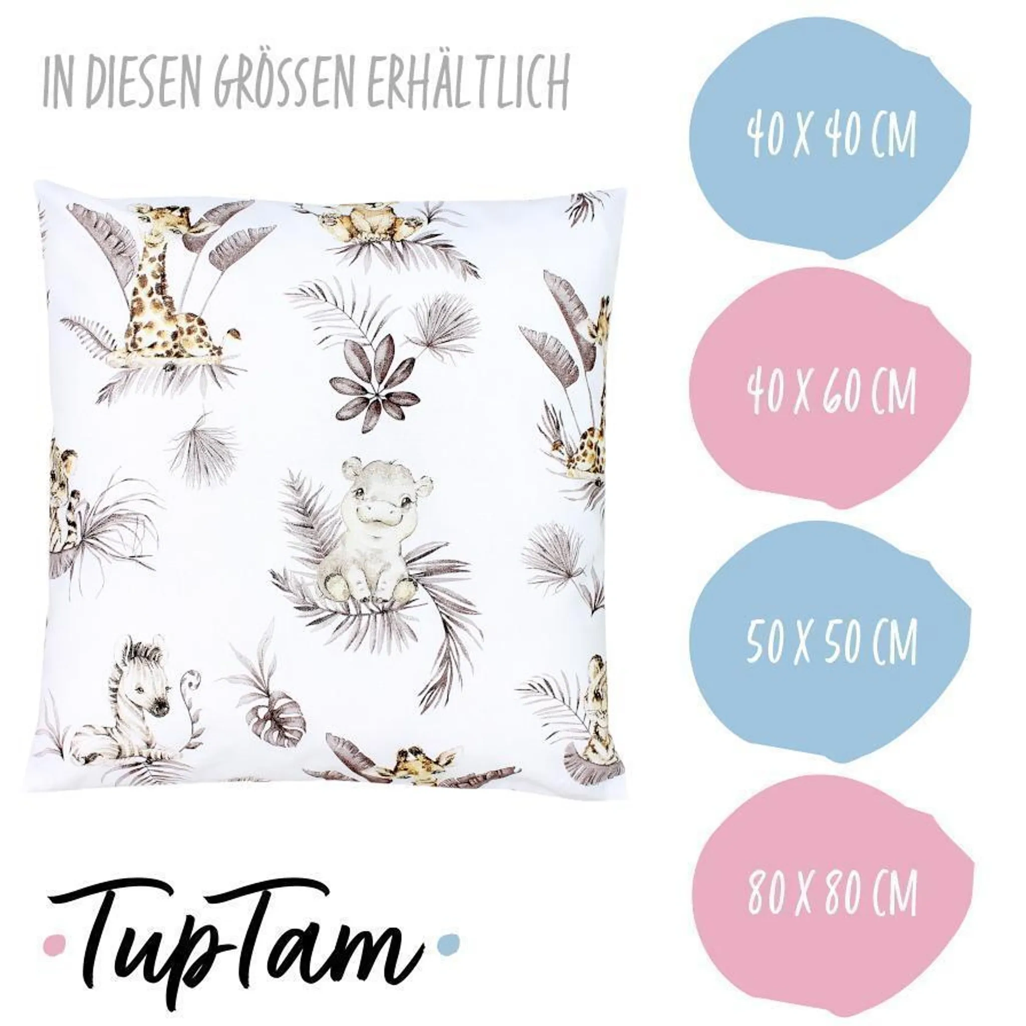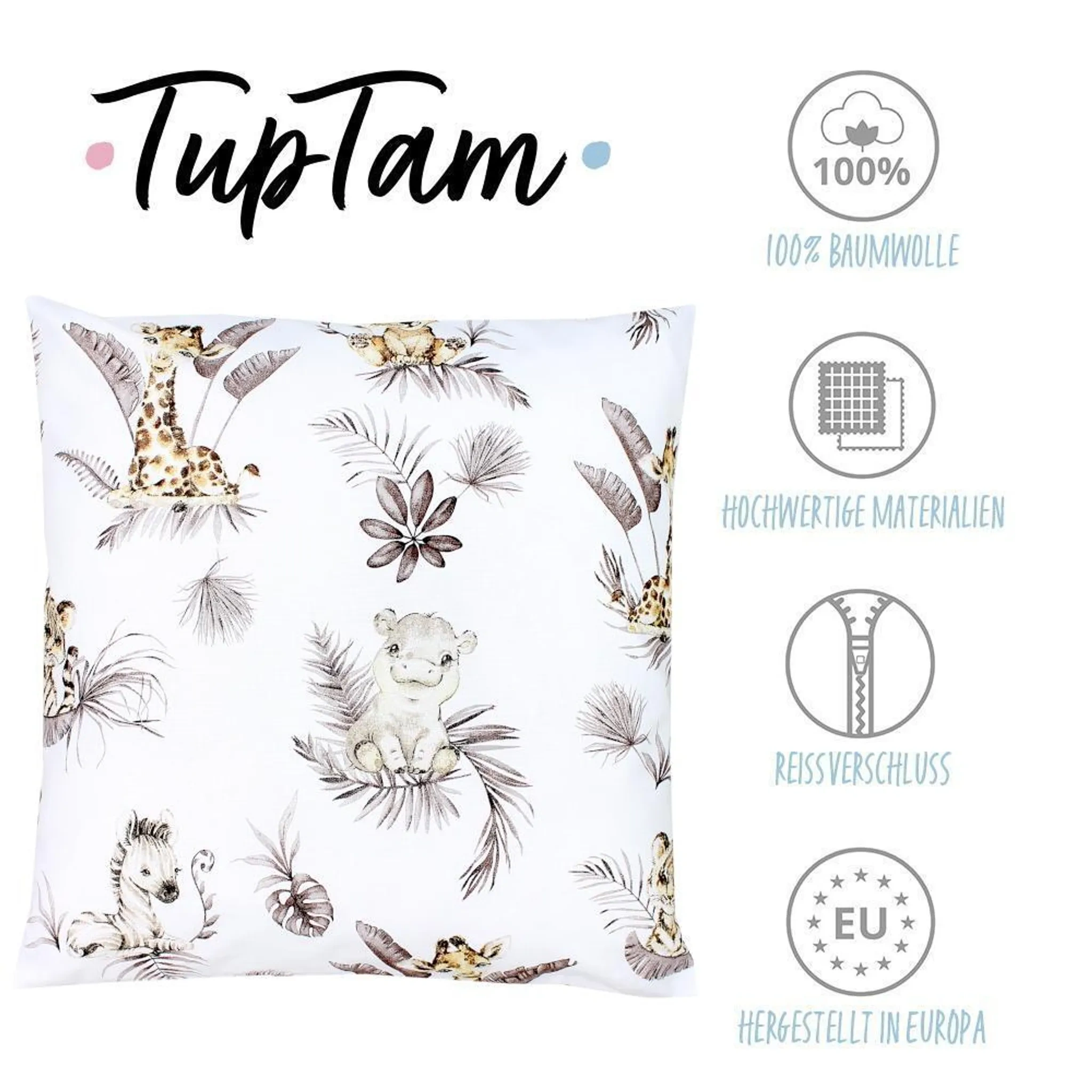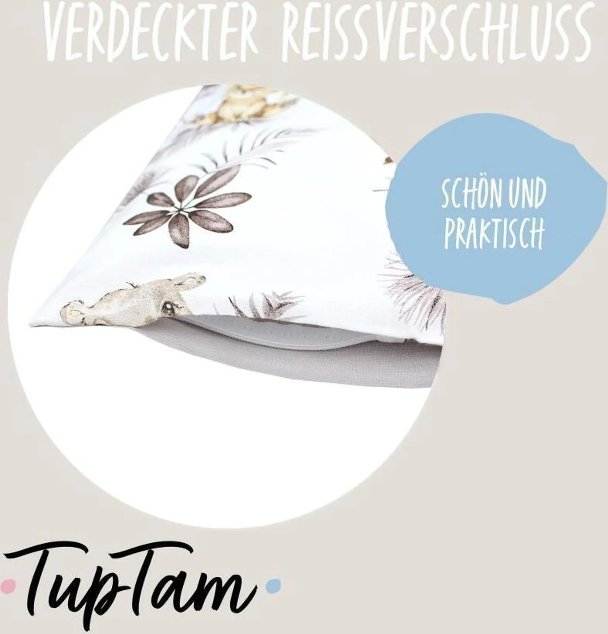 Produktinformationen "TupTam Kinder-Kissenbezug 80x80 cm – Löwe & Blätter Beige, 100% Baumwolle"