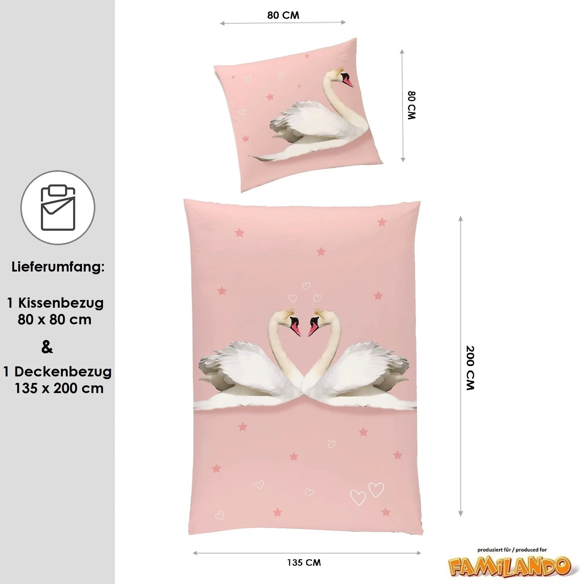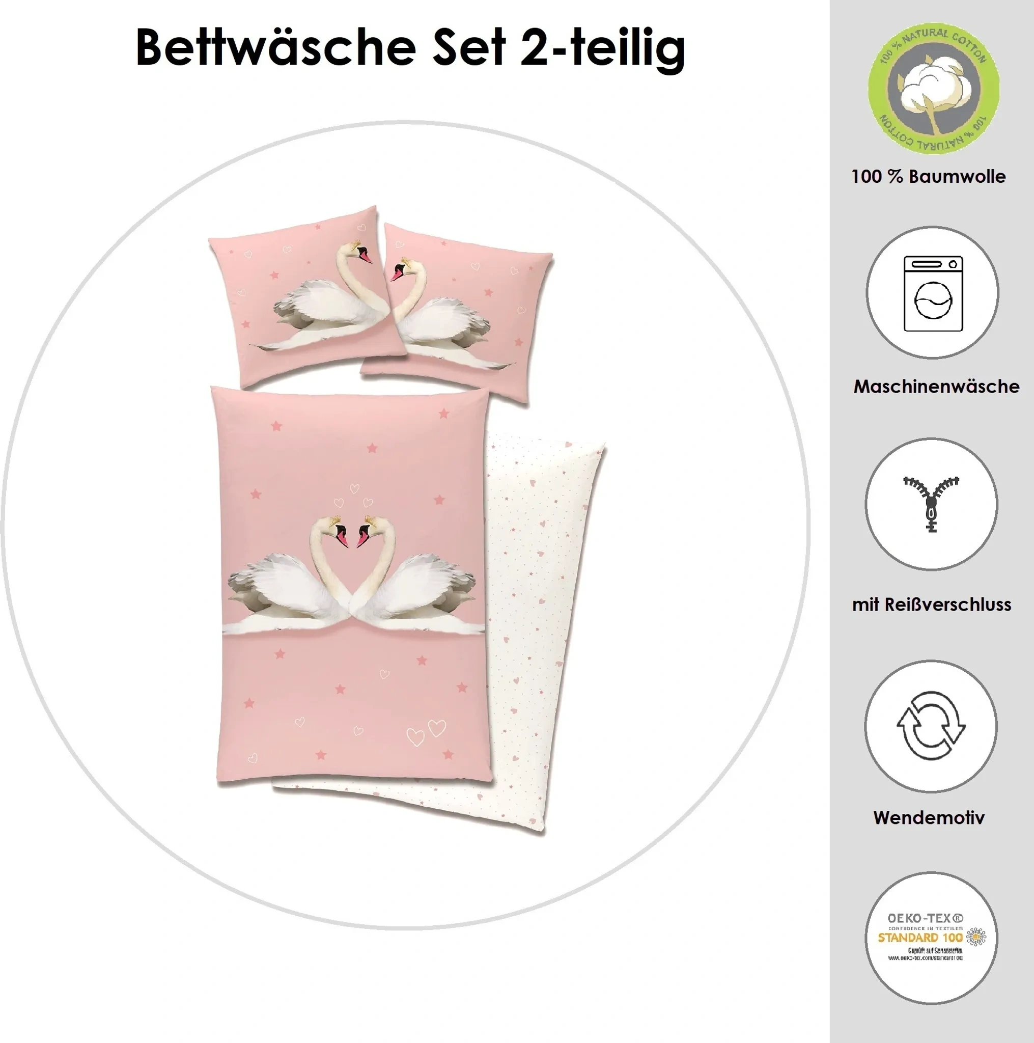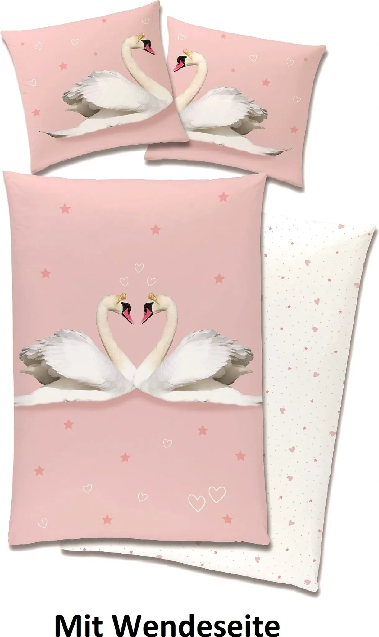 Produktinformationen "Warme Winterbettwäsche "Princess Swan in Love" – Flanell Biber Bettwäsche 135x200 cm & 80x80 cm"
