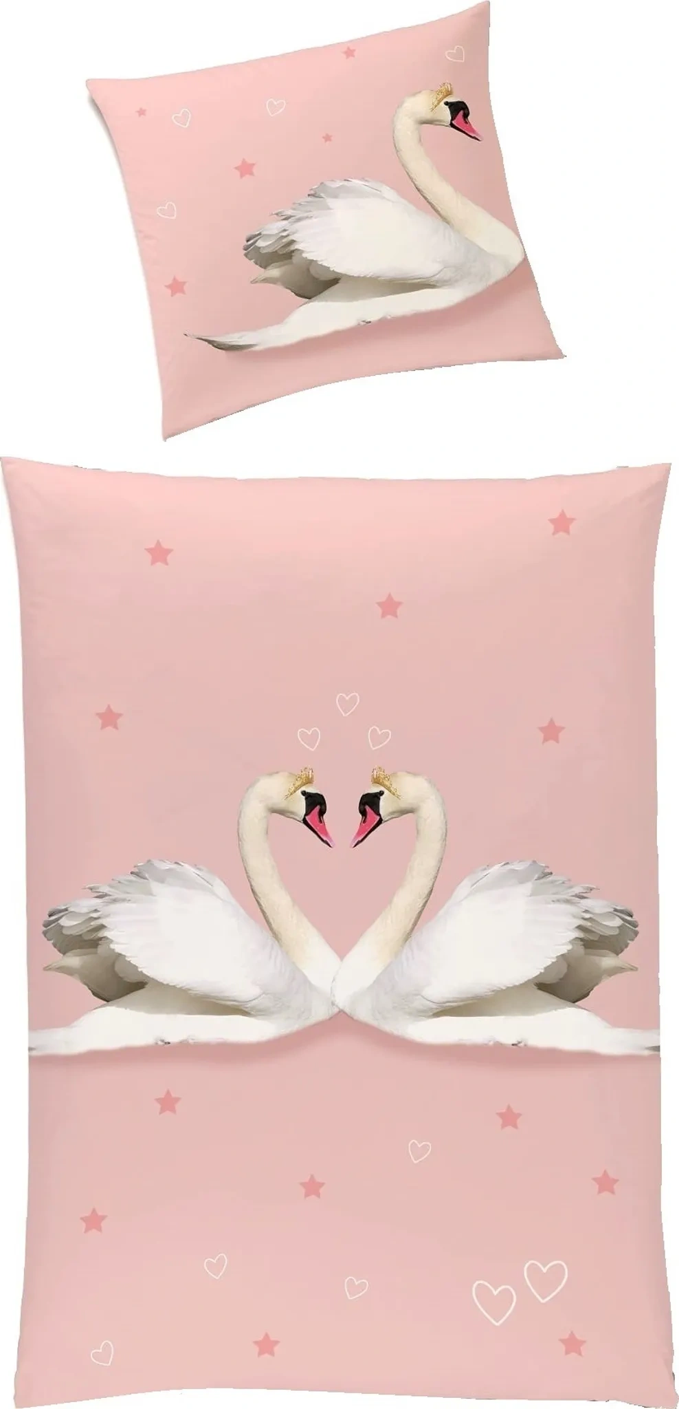 Warme Winterbettwäsche "Princess Swan in Love" – Flanell Biber Bettwäsche 135x200 cm & 80x80 cm