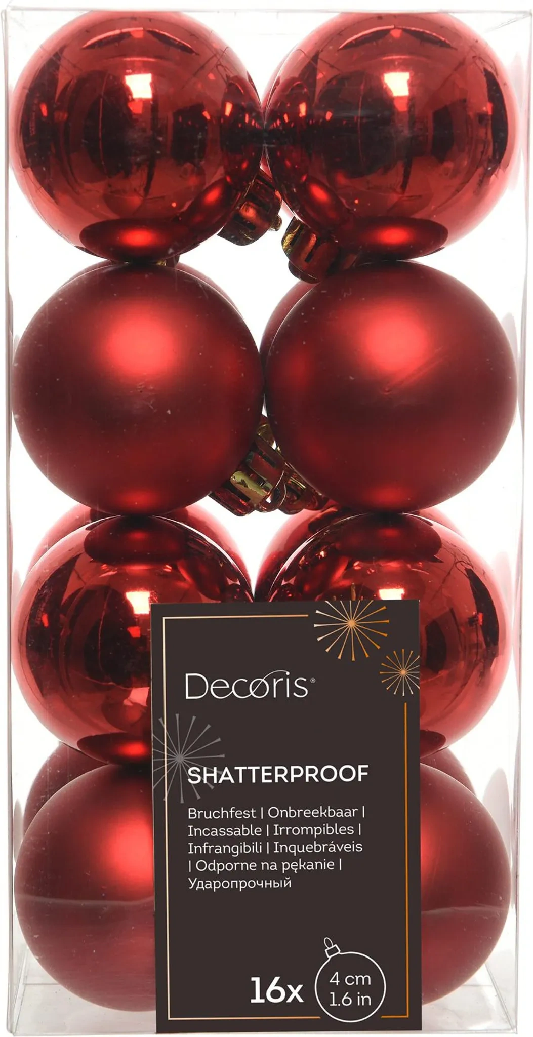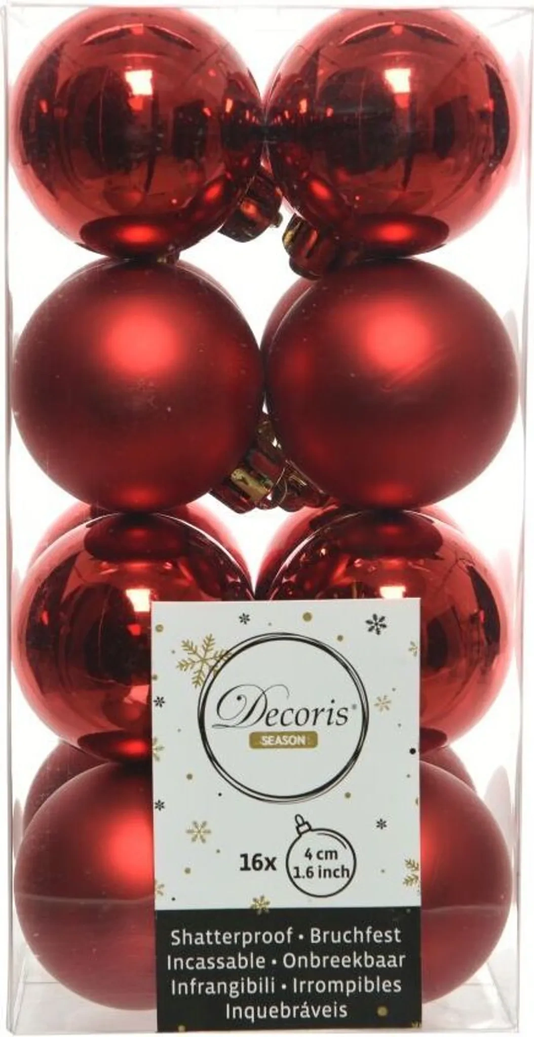 Weihnachtskugeln Kunststoff 4 cm – 16 Stück, Weihnachtsrot