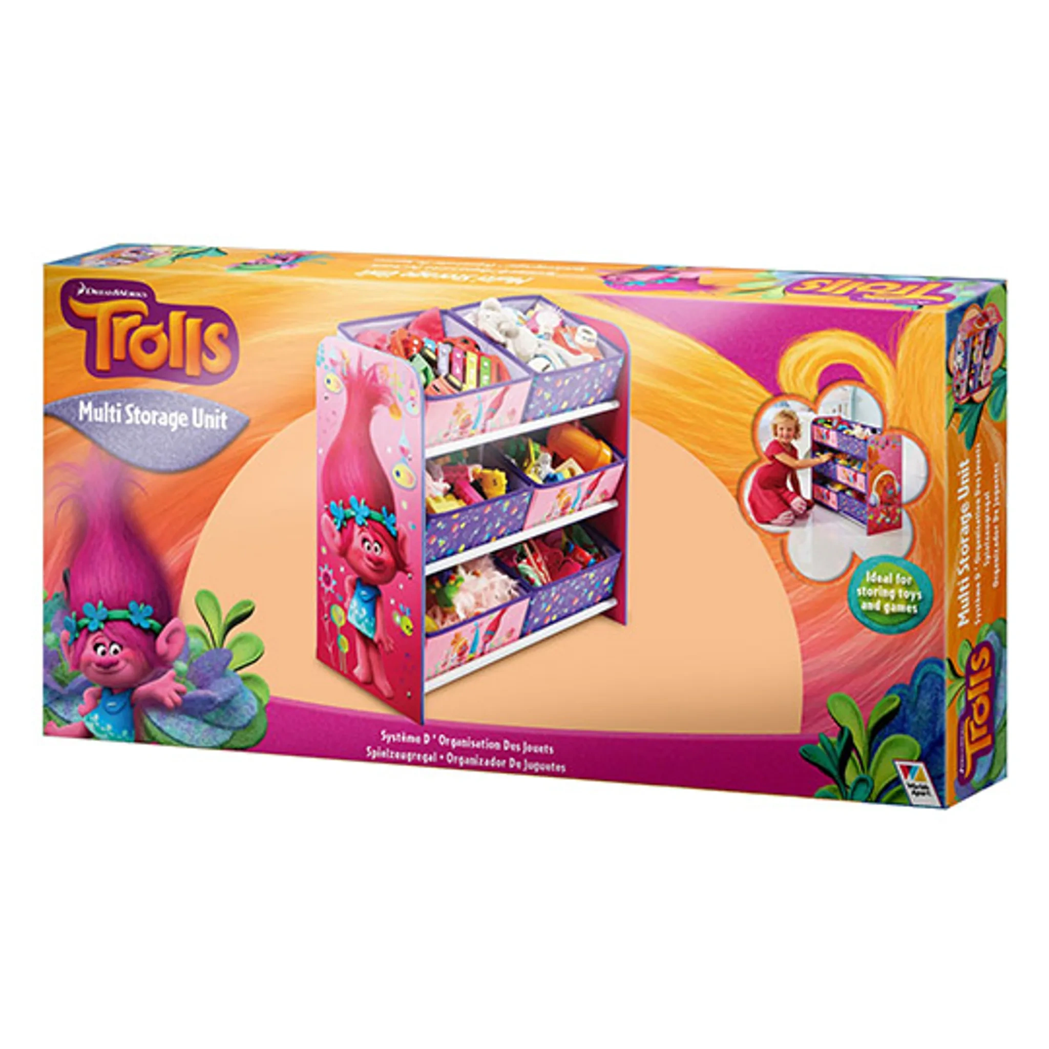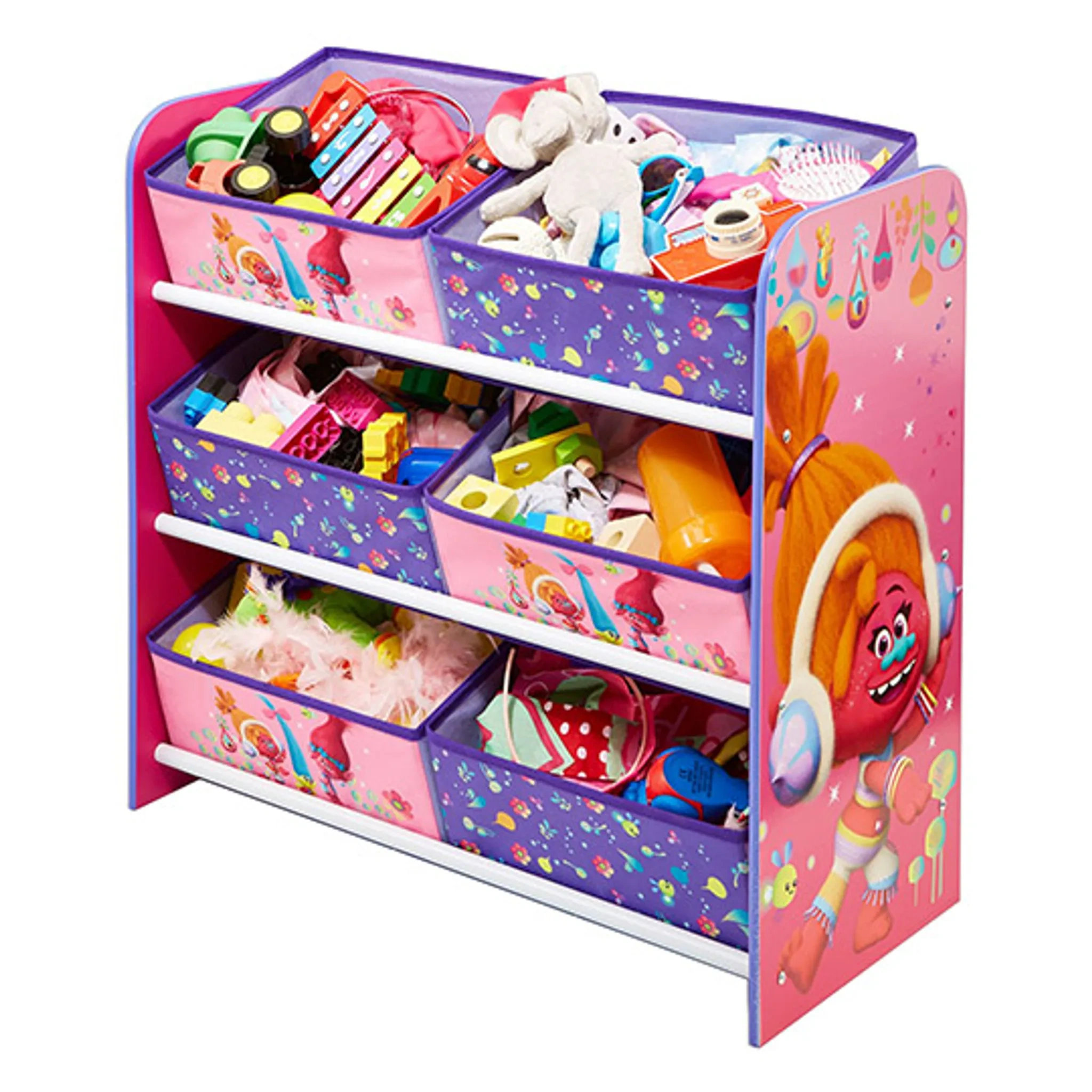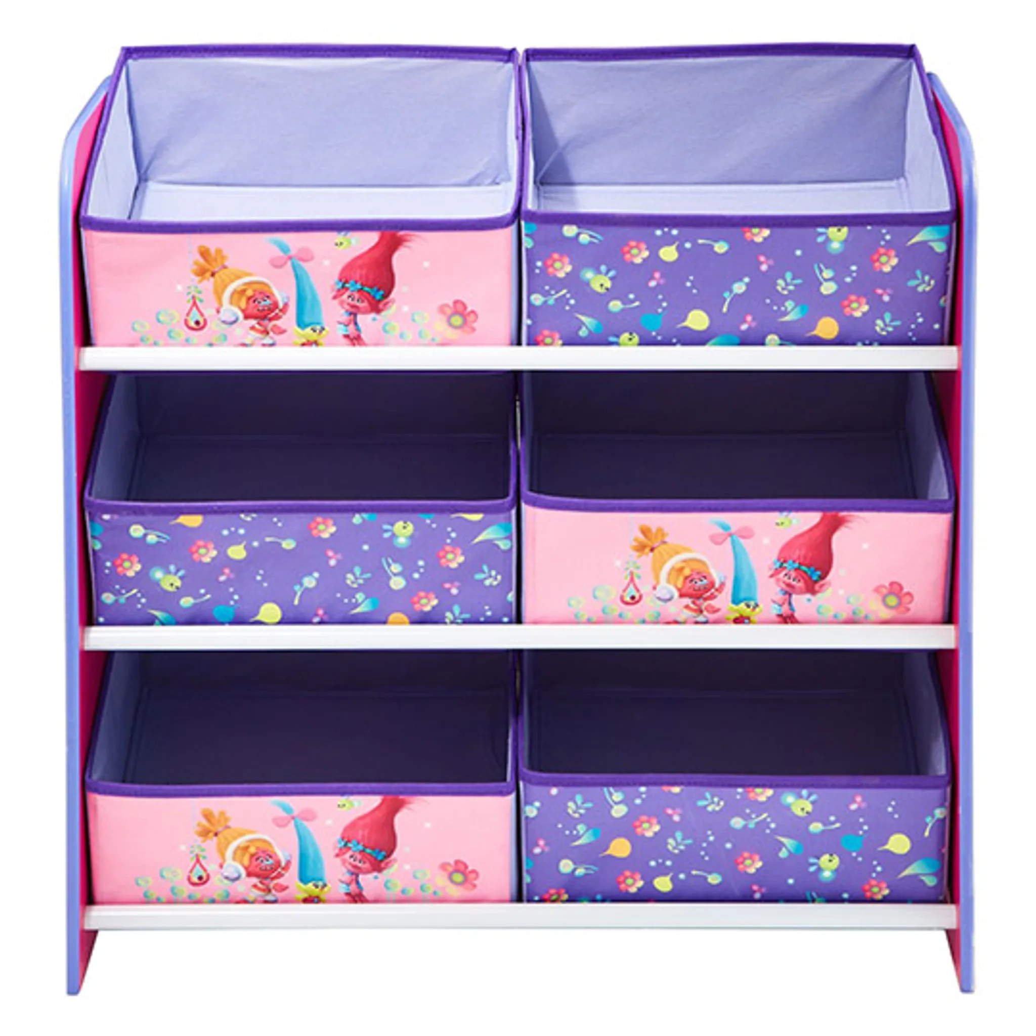 Worlds Apart TROLLS Multi Regal Toy Organizer – Kinder Aufbewahrungsregal mit 6 Stoffkörben