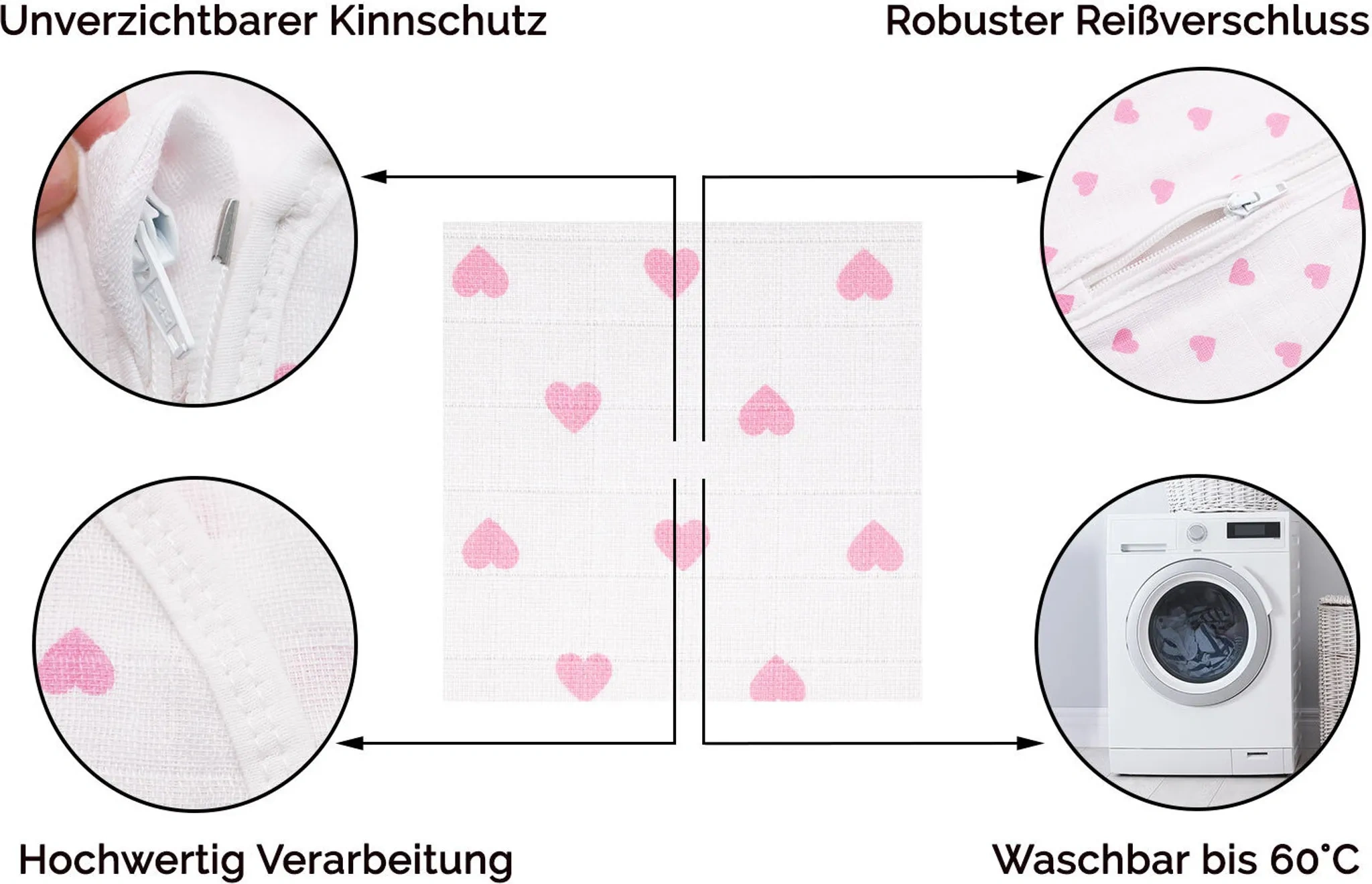 • 1 × Sommerschlafsack 110 cm in Weiß mit Rosa Herzen