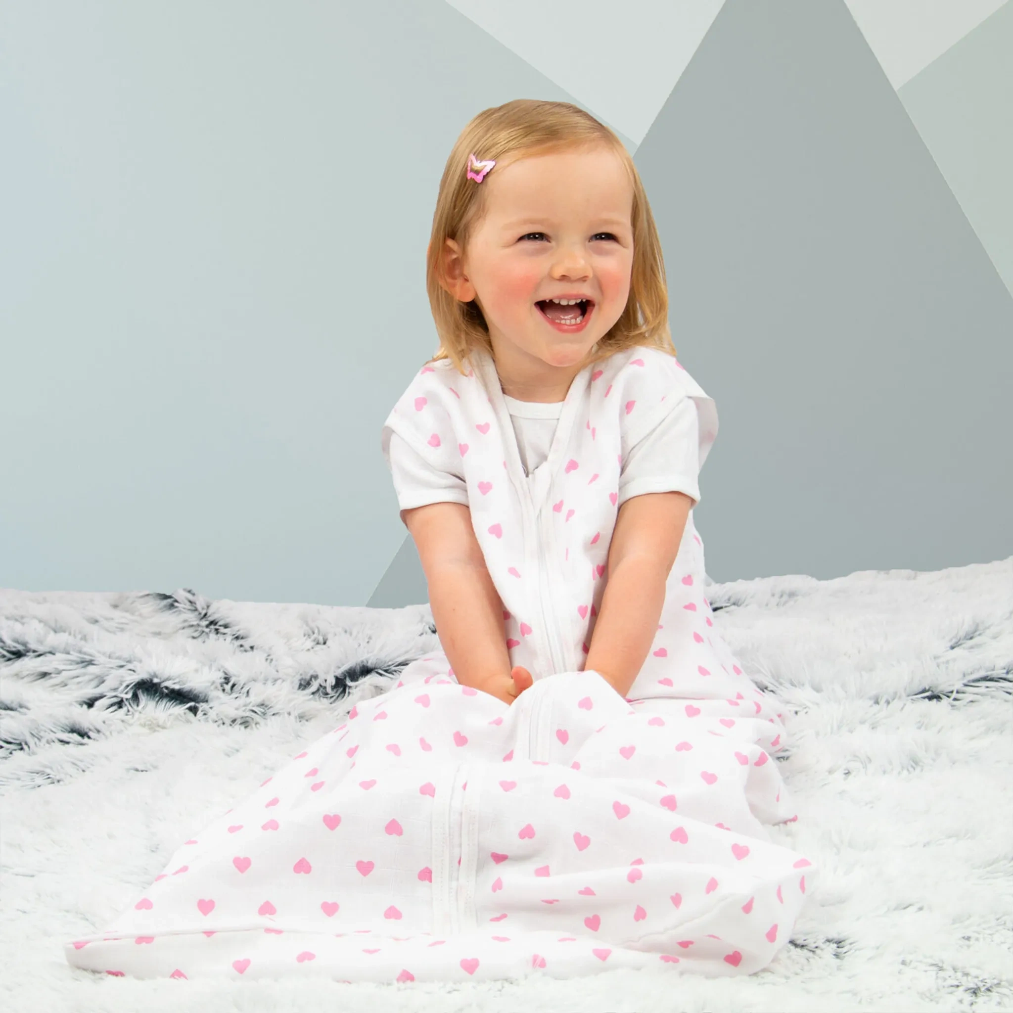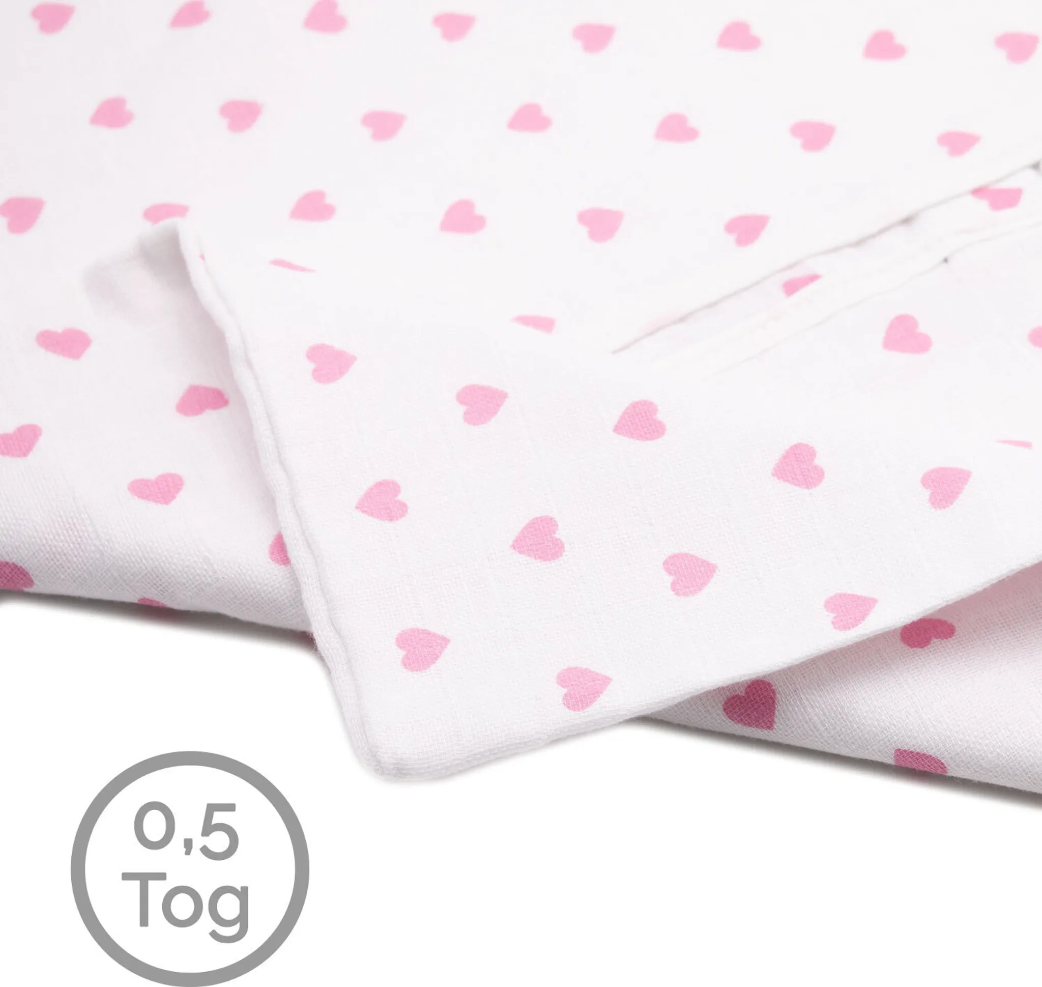 ZOLLNER Sommerschlafsack 110 cm – Weiß mit Rosa Herzen, 100% Baumwolle